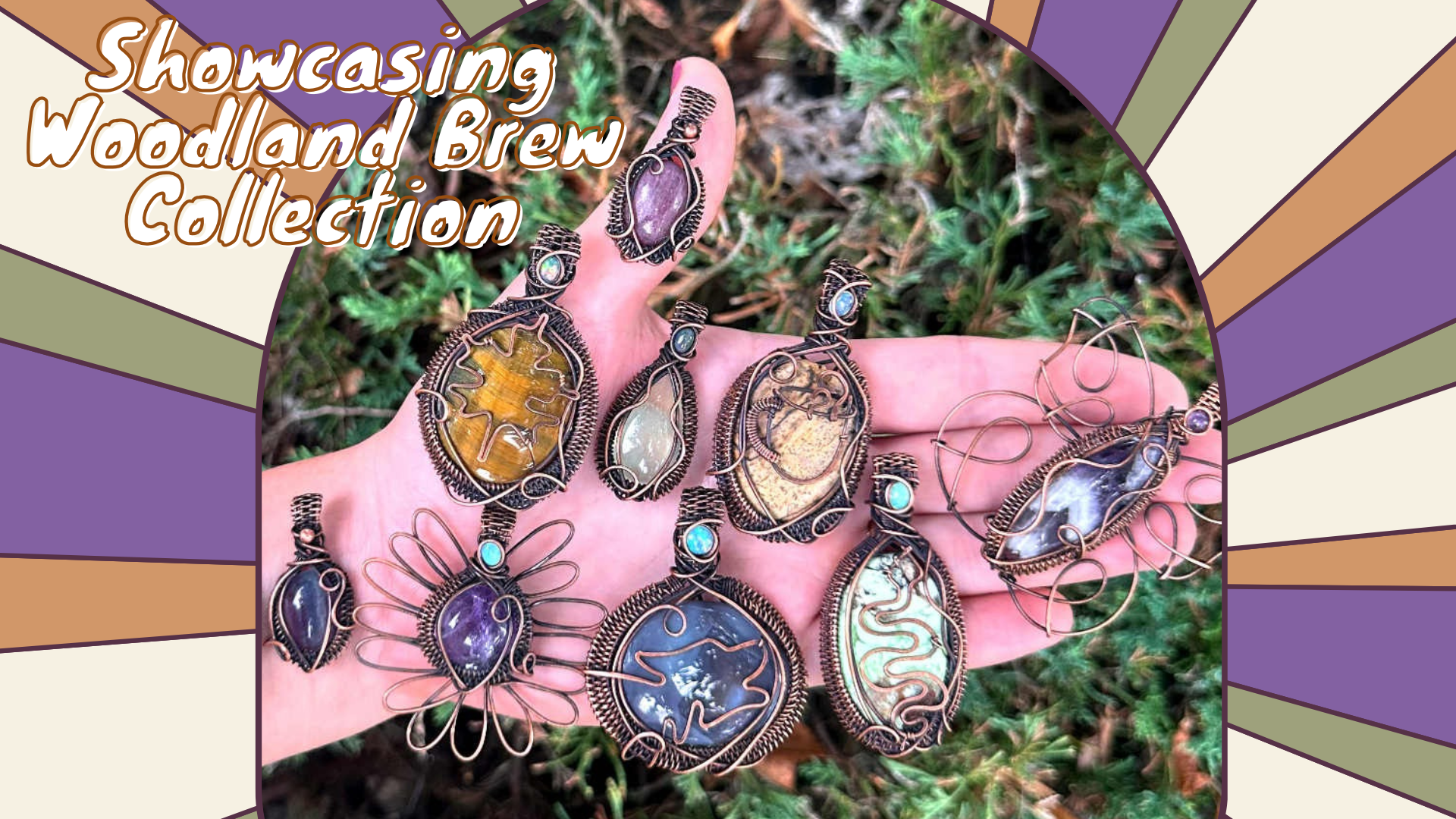 Showcasing Woodland Brew Collection This fall collection of hand-wrapped copper pendants captures...