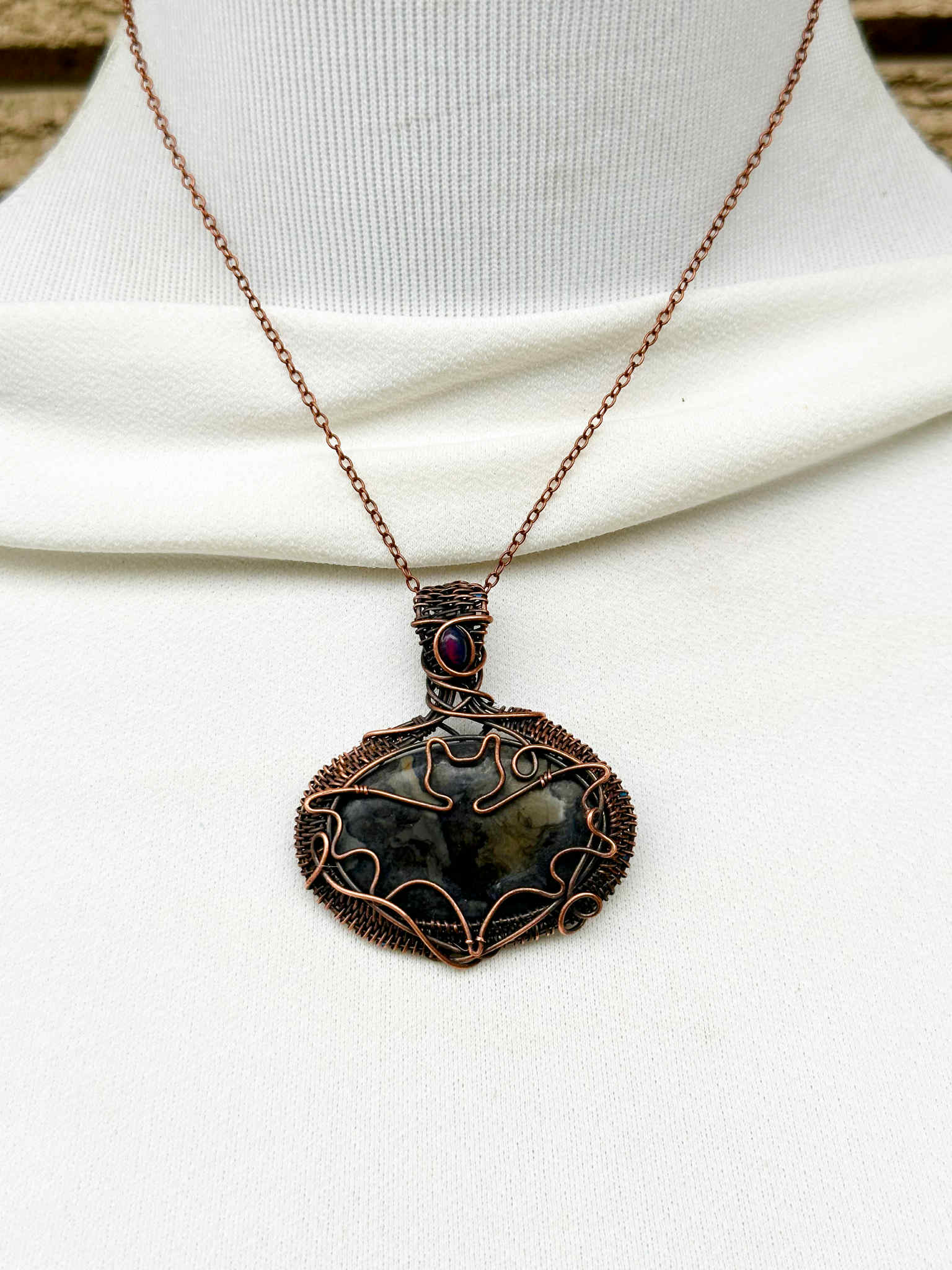 Wrapped in pure copper wire to ground and balance the stone’s potent energy.