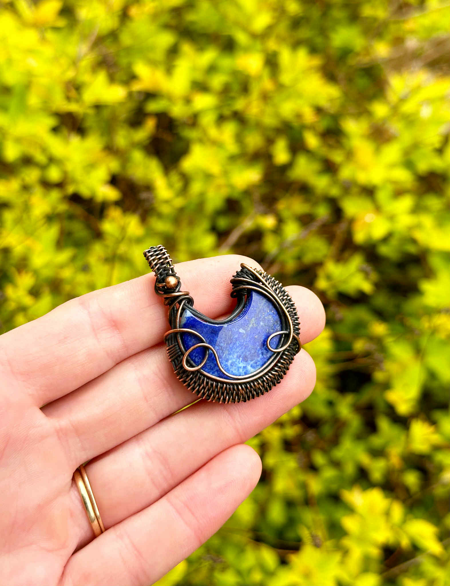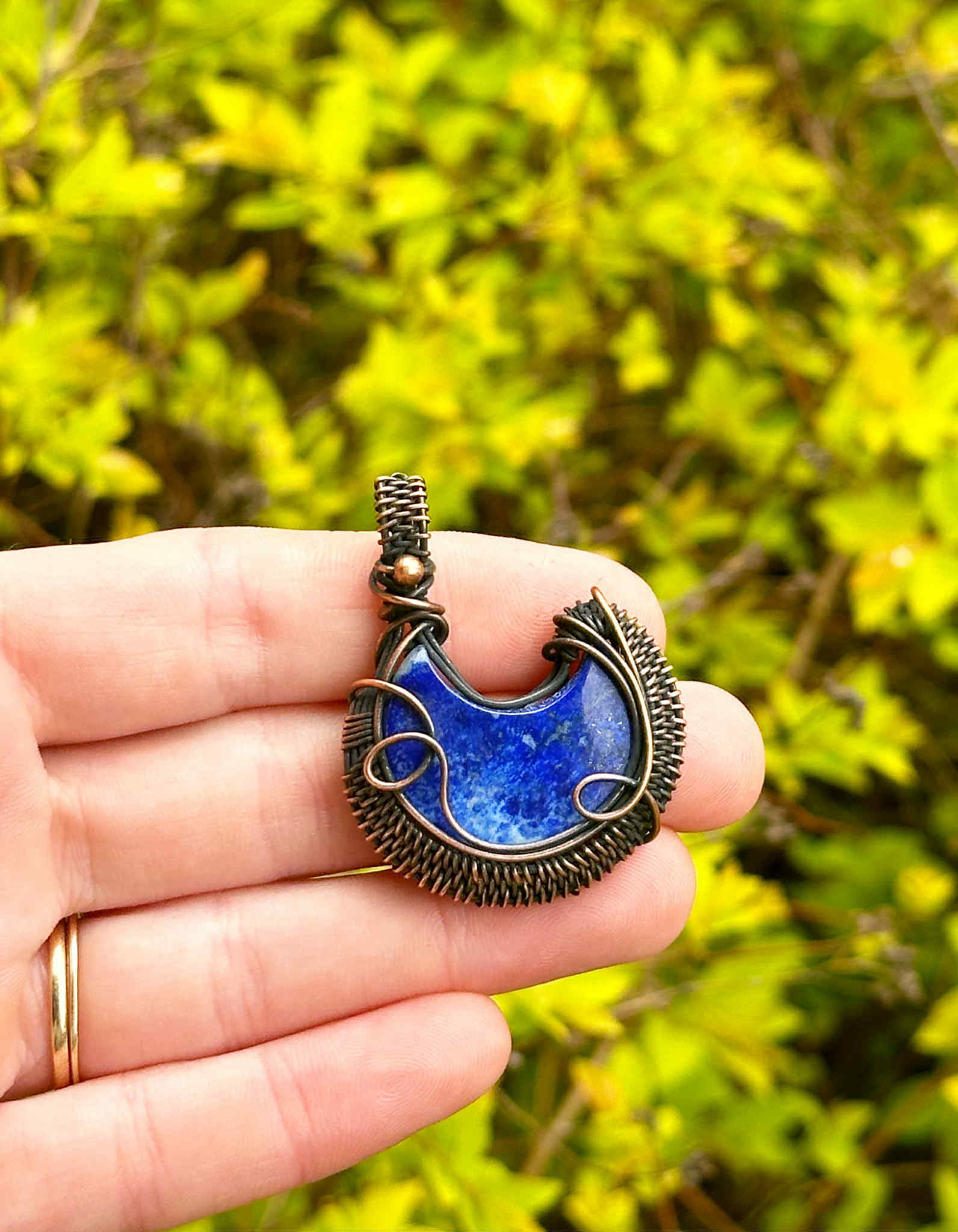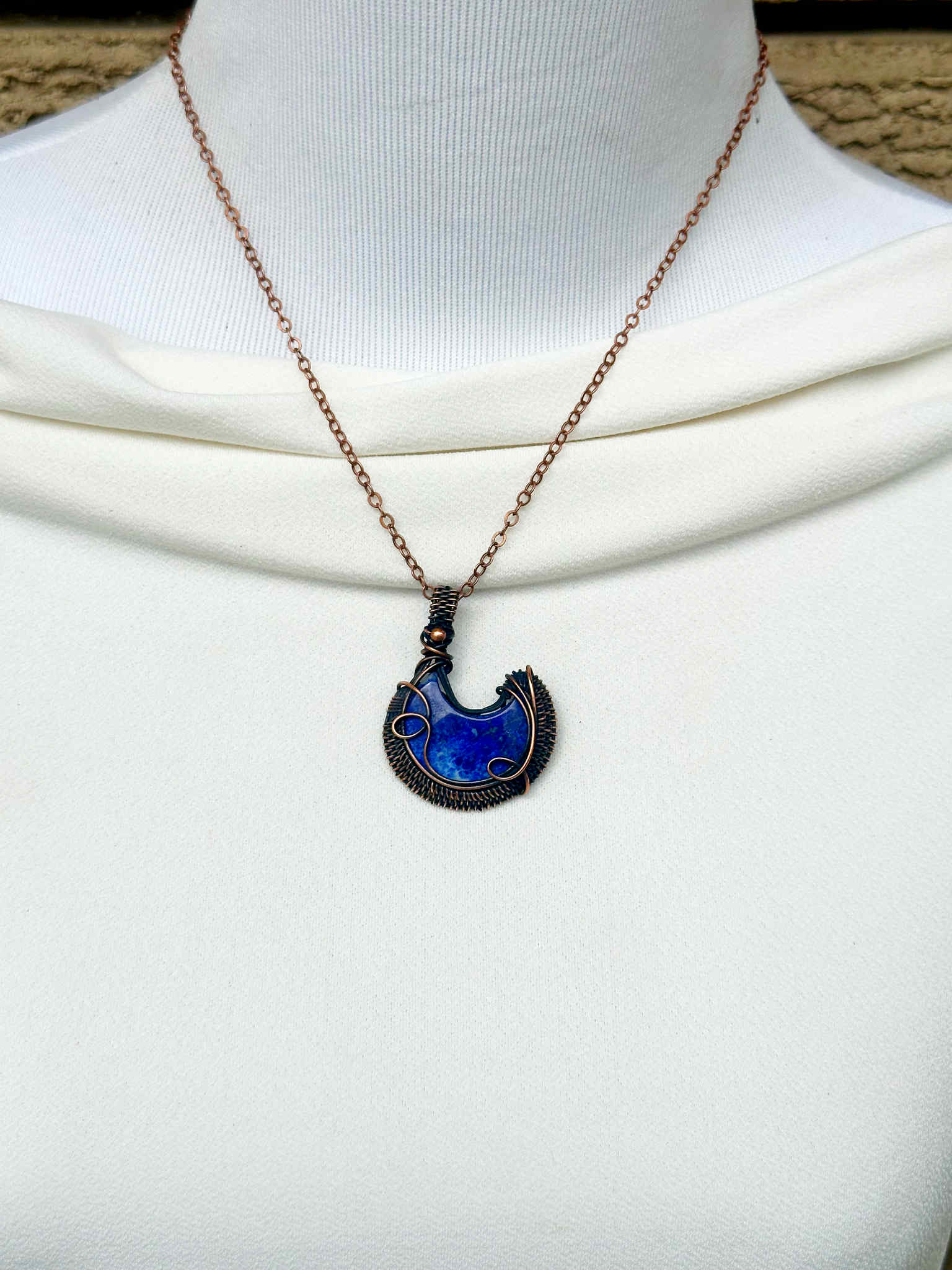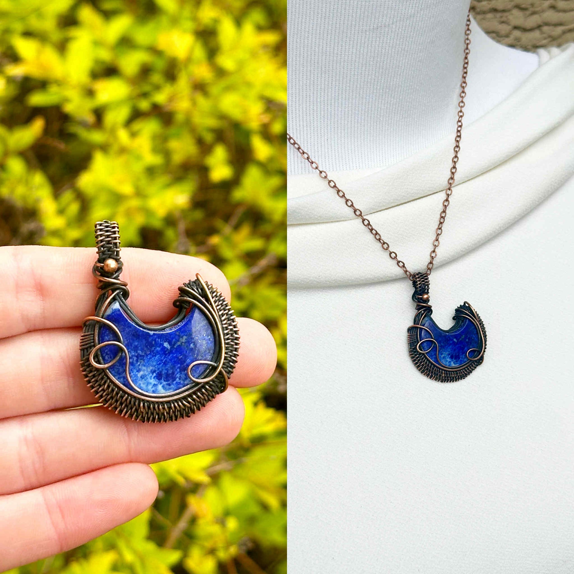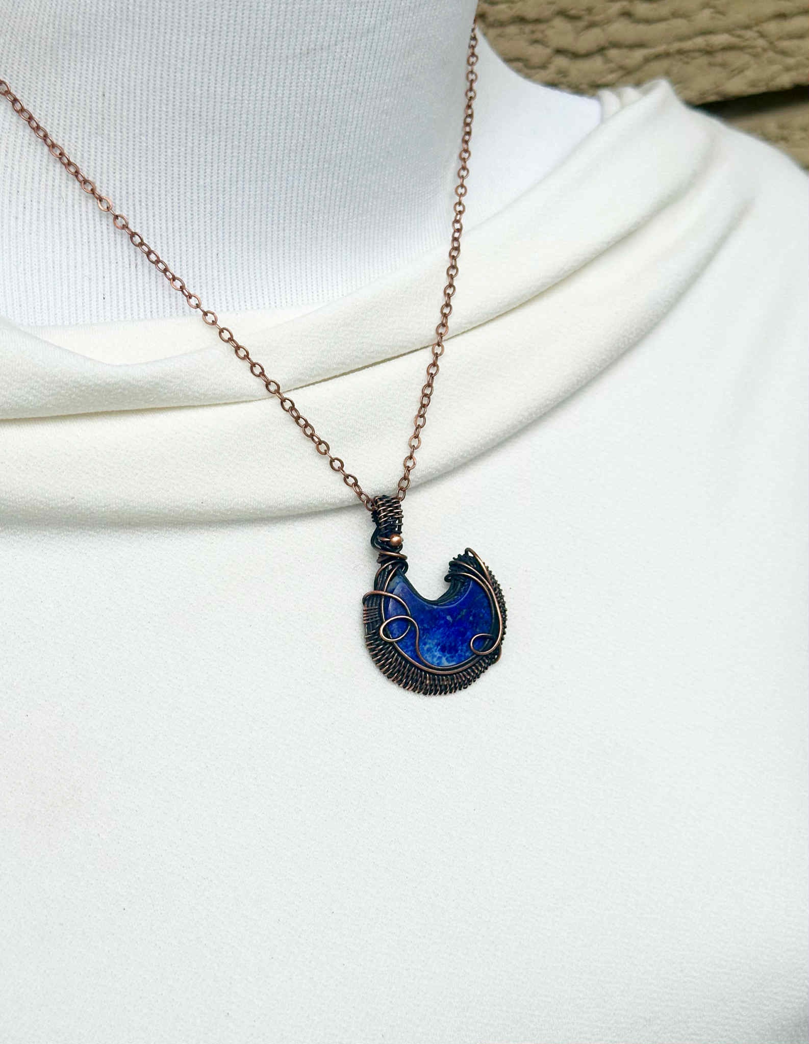 Crescent Moon Lapis Crystal Copper Pendant