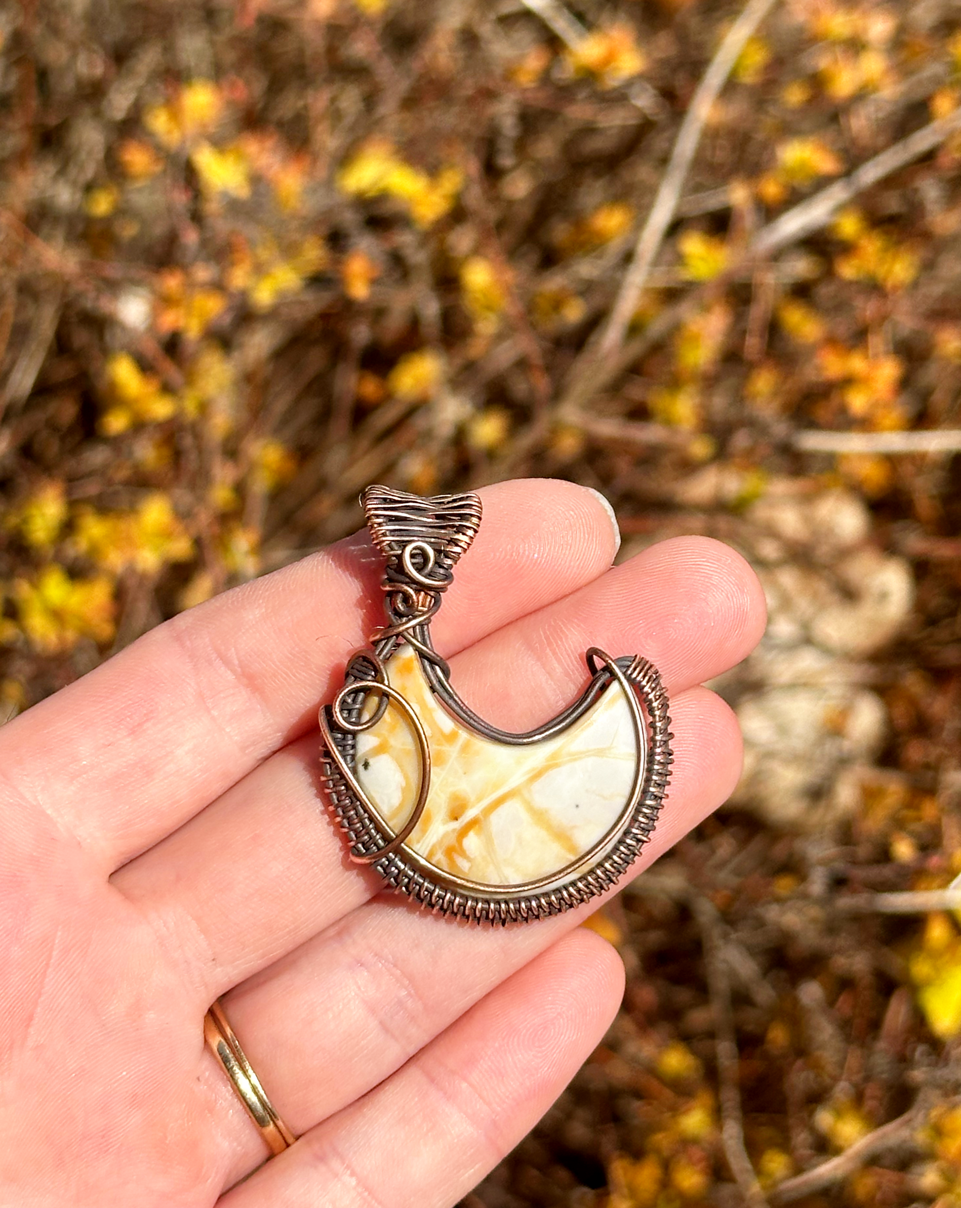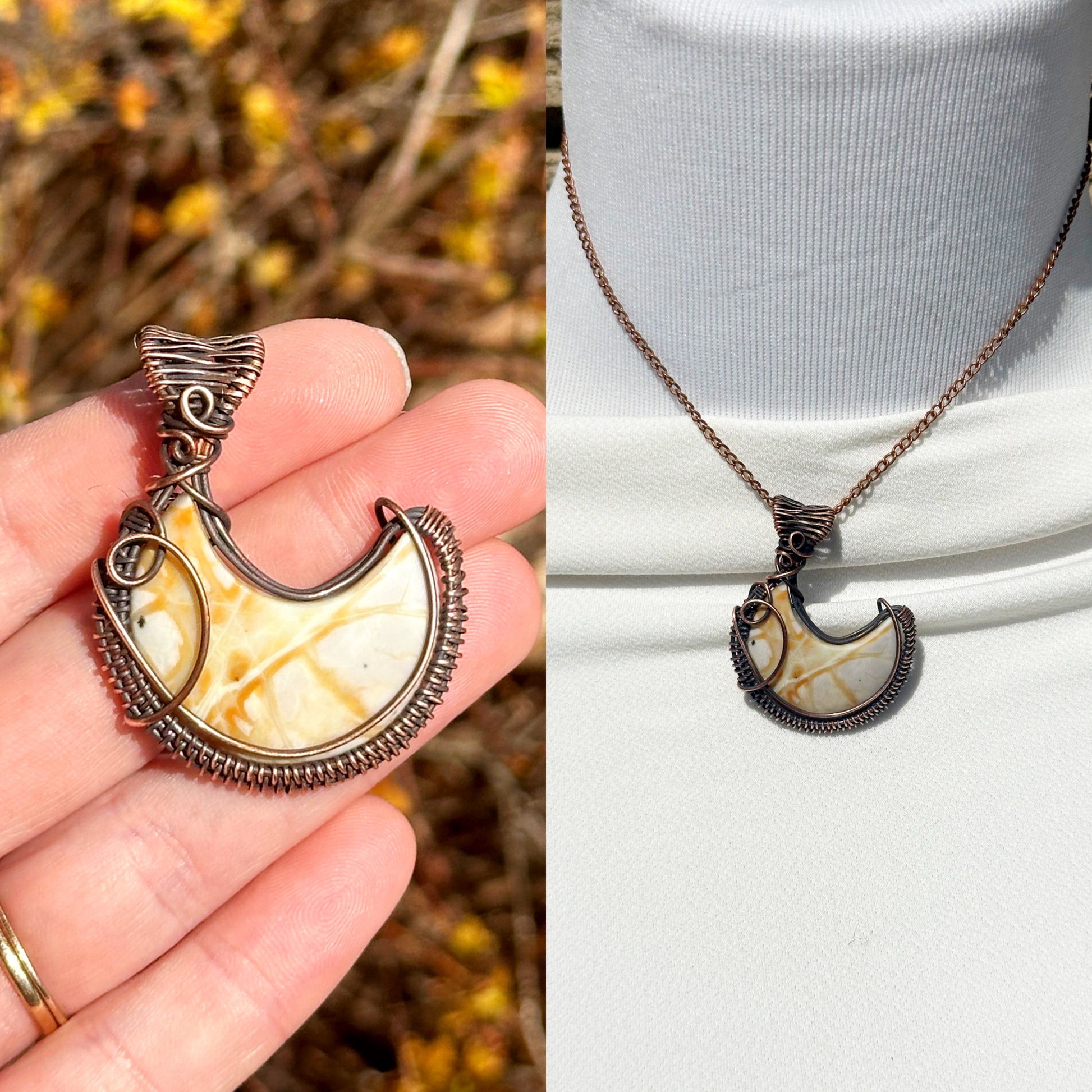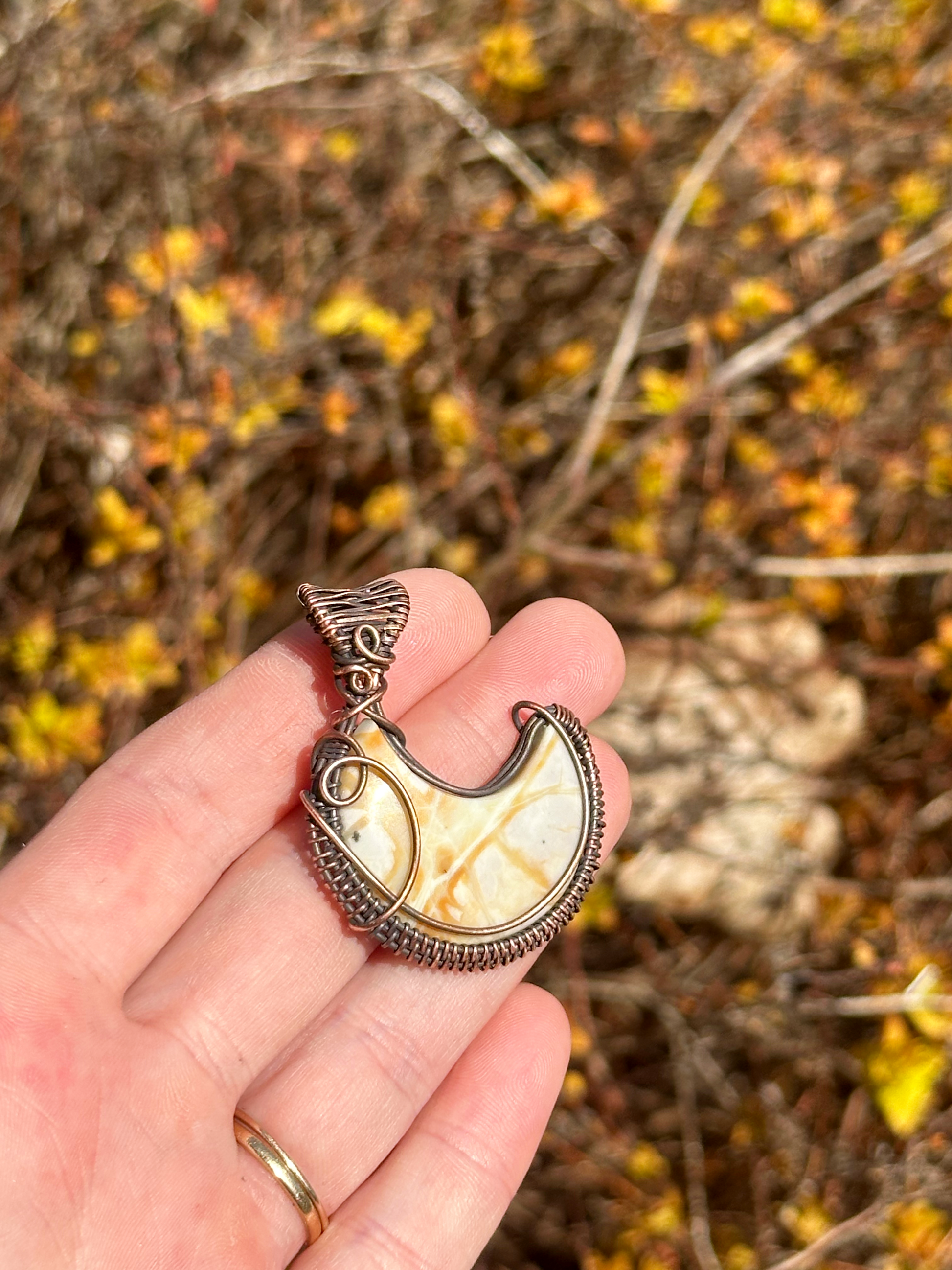 Crescent Moon Picture Jasper Crystal Copper Pendant
