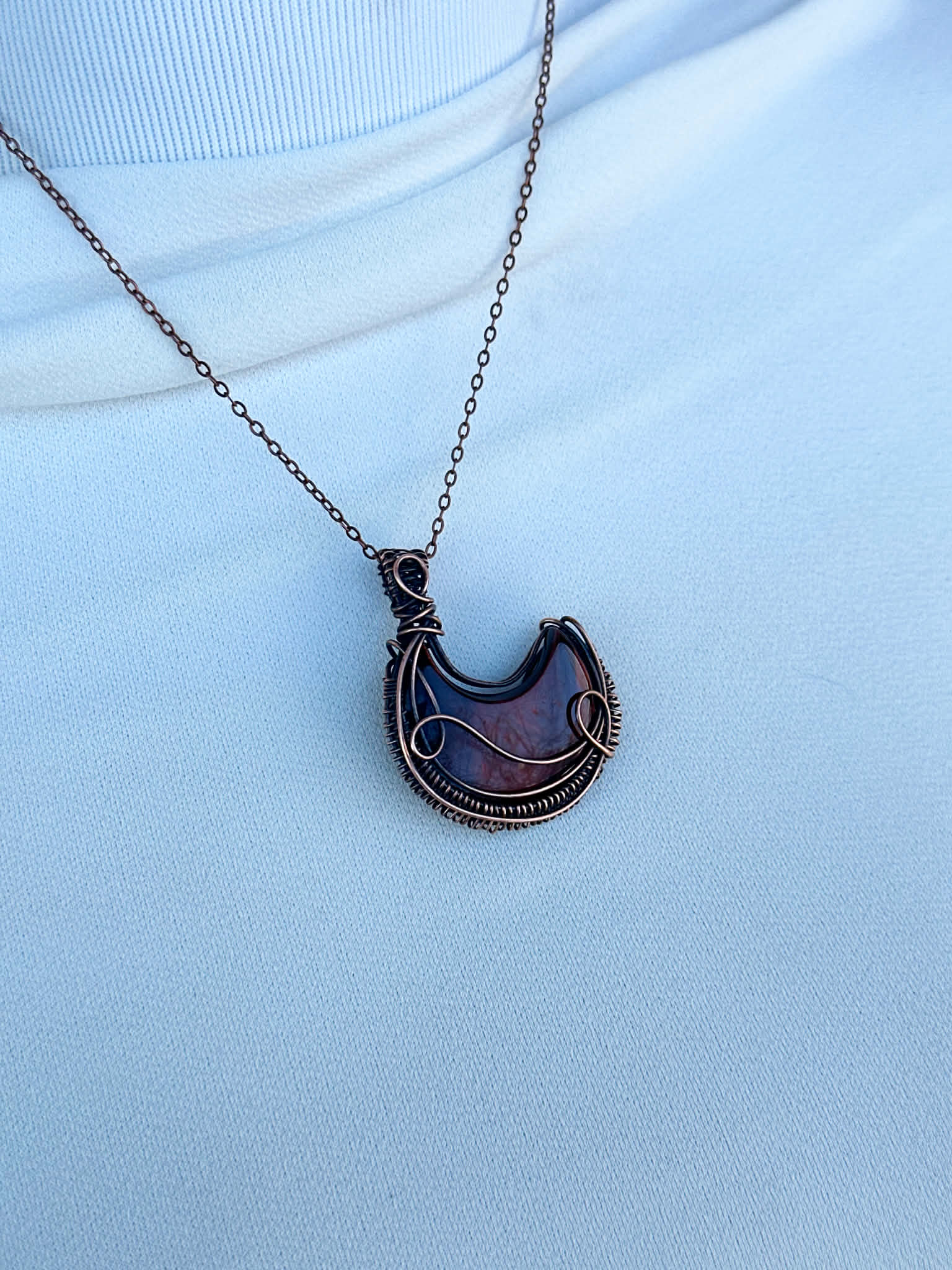 Crescent Moon Red Tigers Eye Crystal Copper Pendant