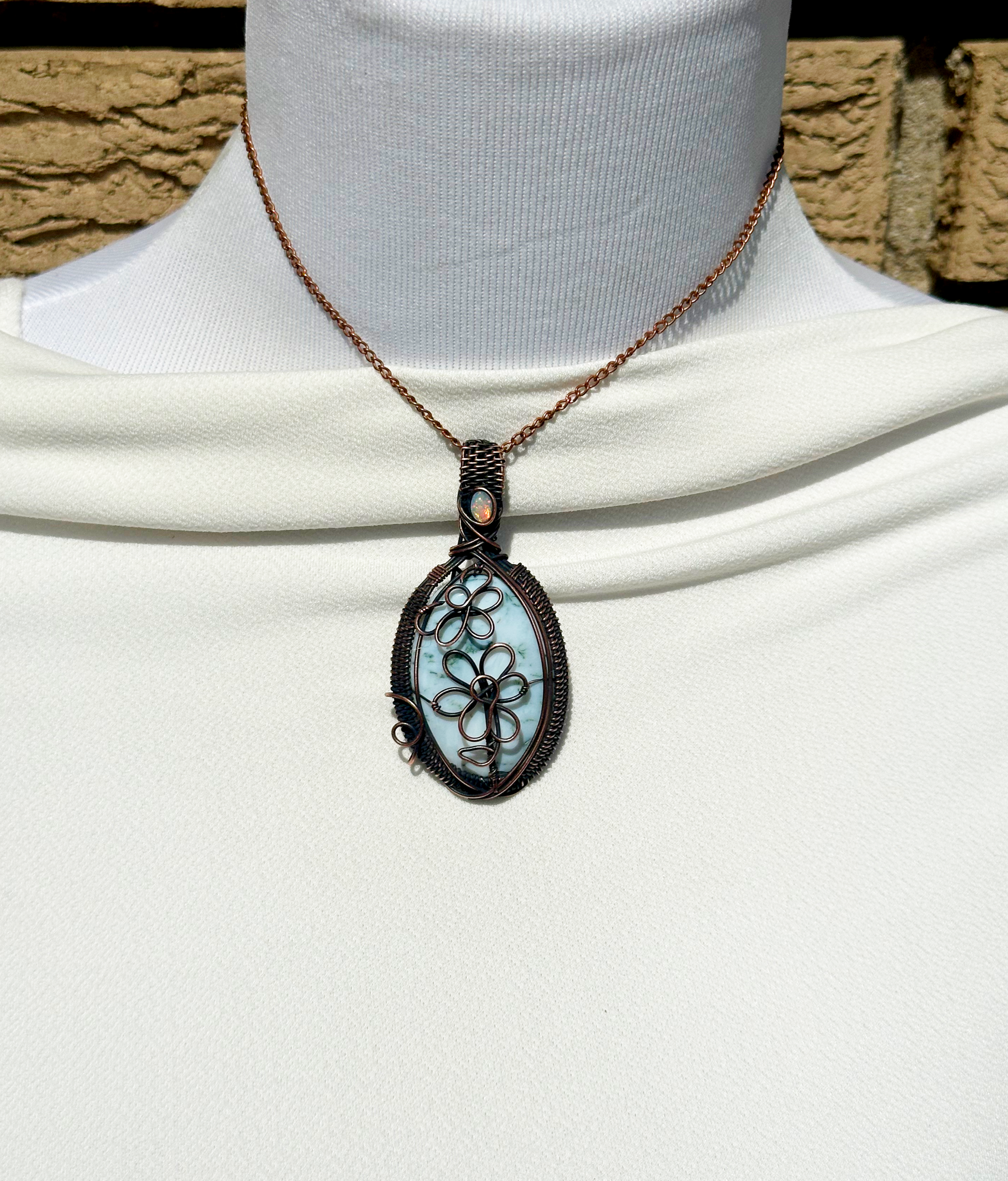 - Encased in 100% natural copper wire, this design enhances the stone’s grounding energy. Copper complements Moss Agate’s properties, supporting emotional stability and physical vitality.