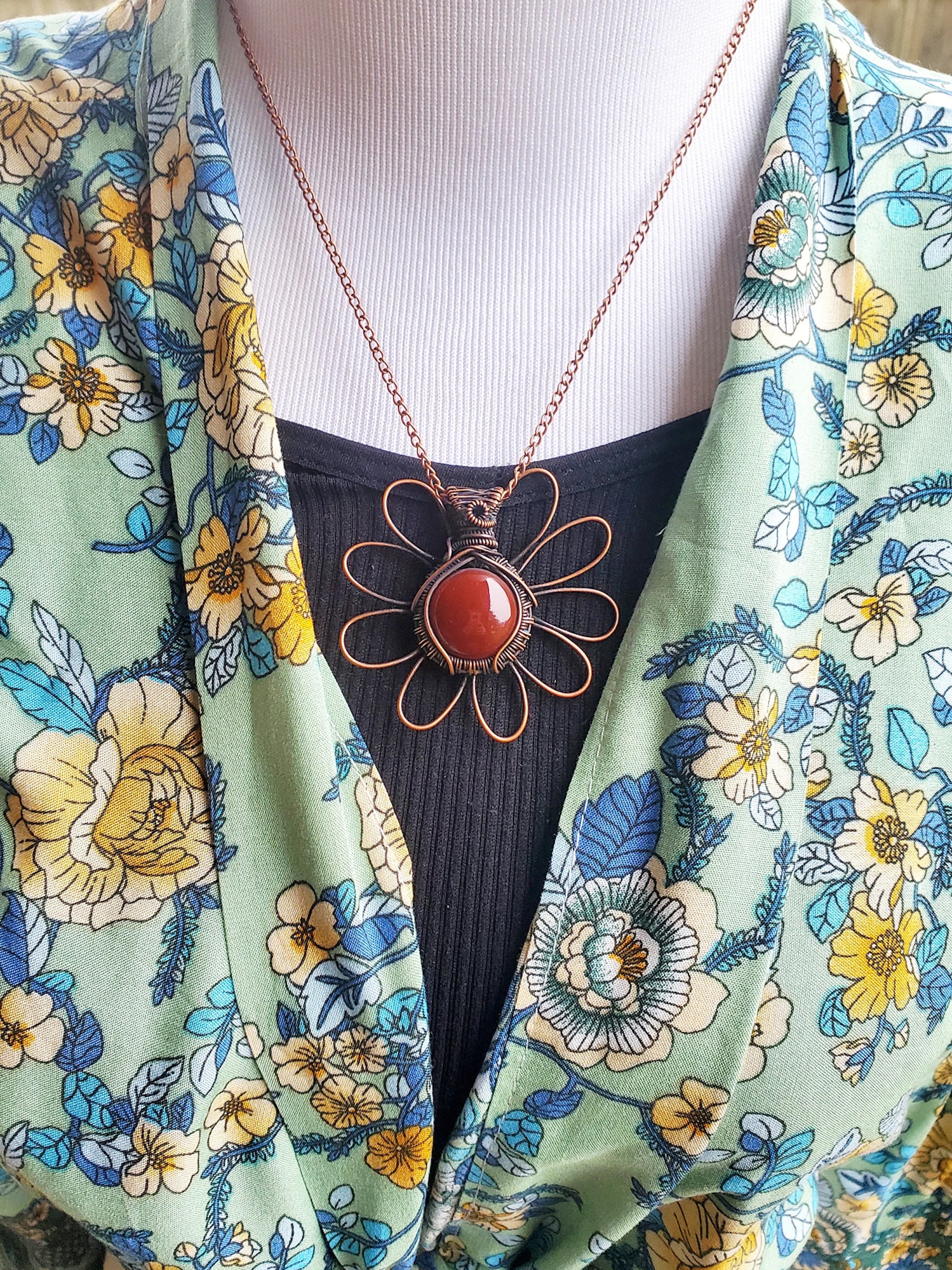 • Wrapped in 100% natural copper wire, the copper enhances the stone's energy. Copper amplifies the grounding and spiritual properties of Red Onyx, supporting both physical and emotional well-being.