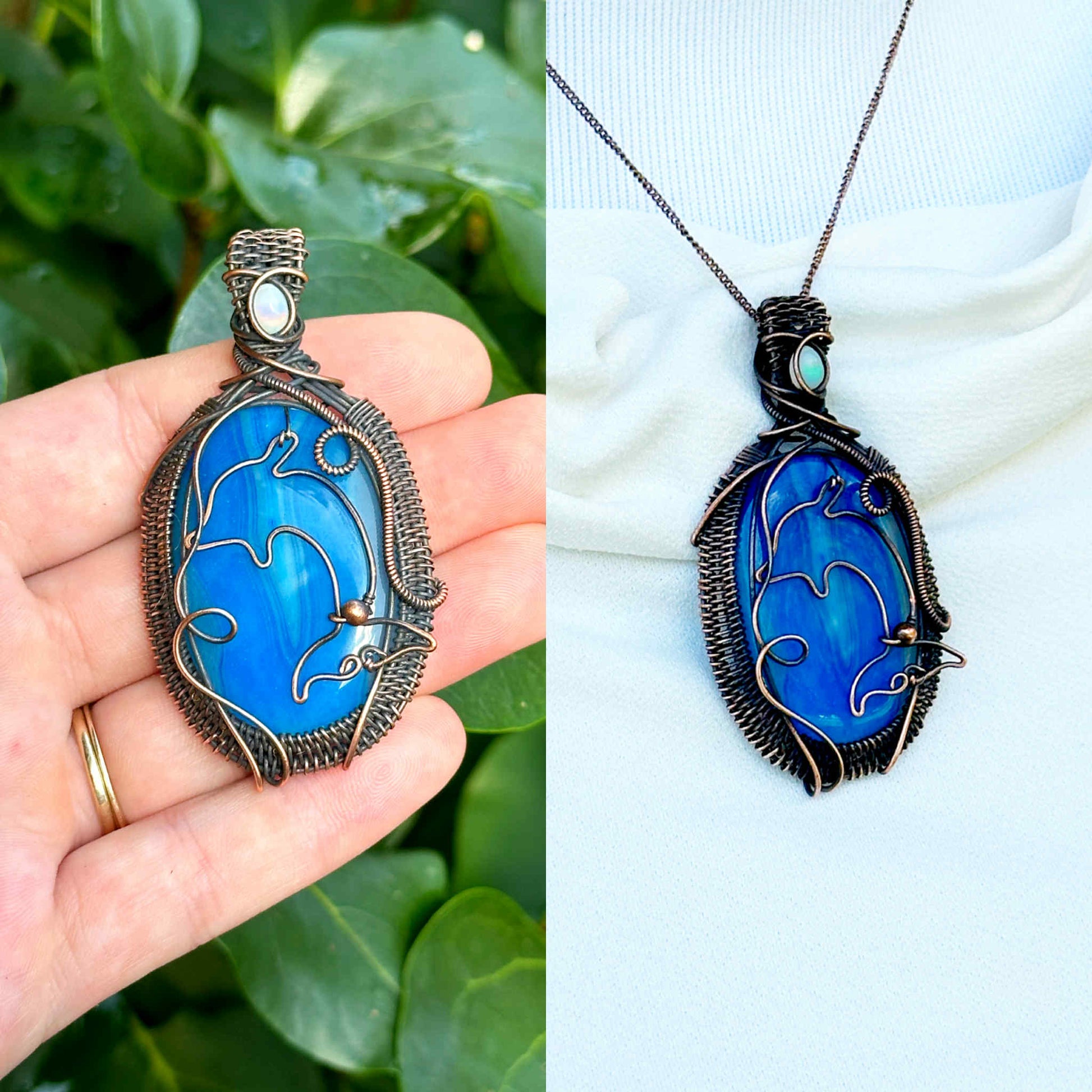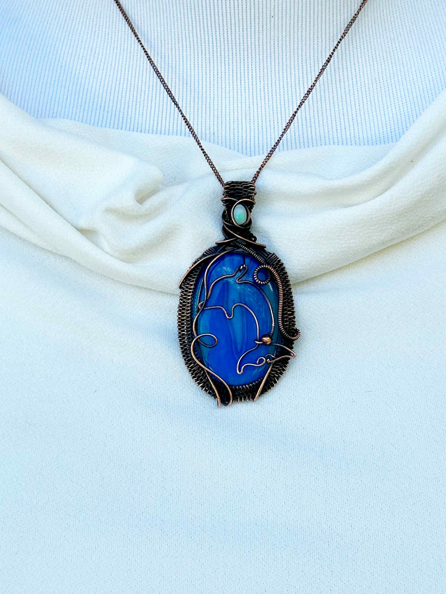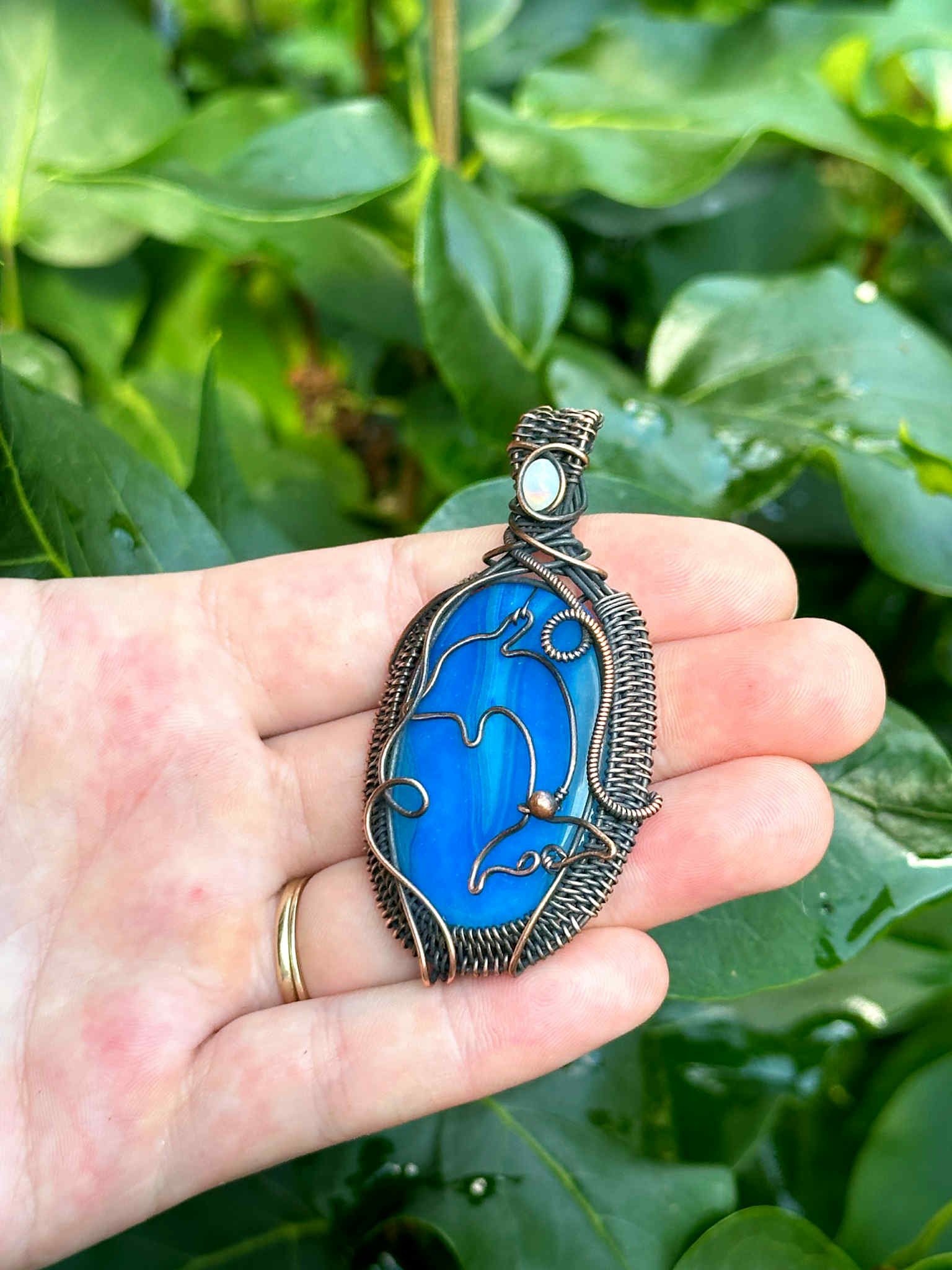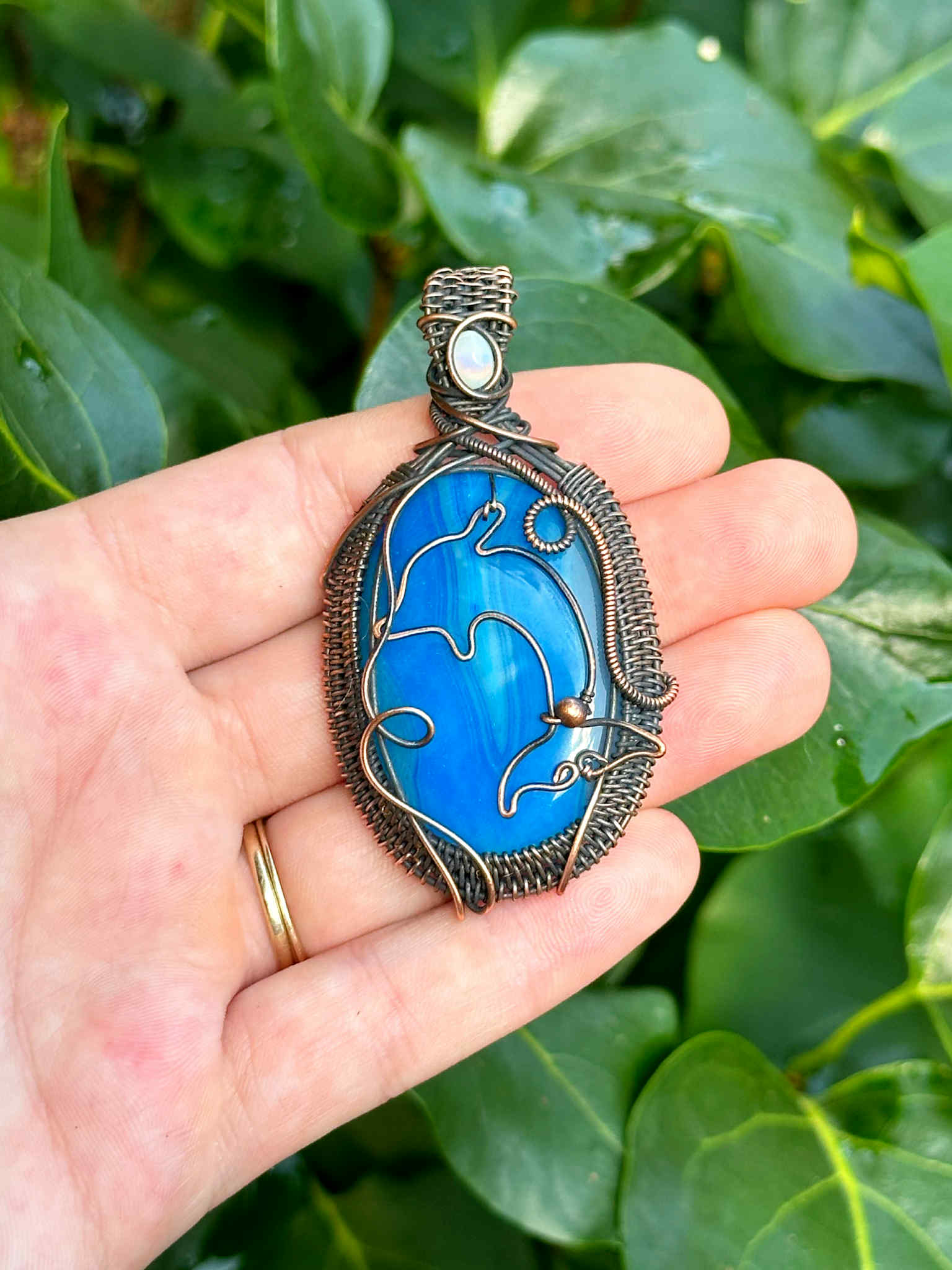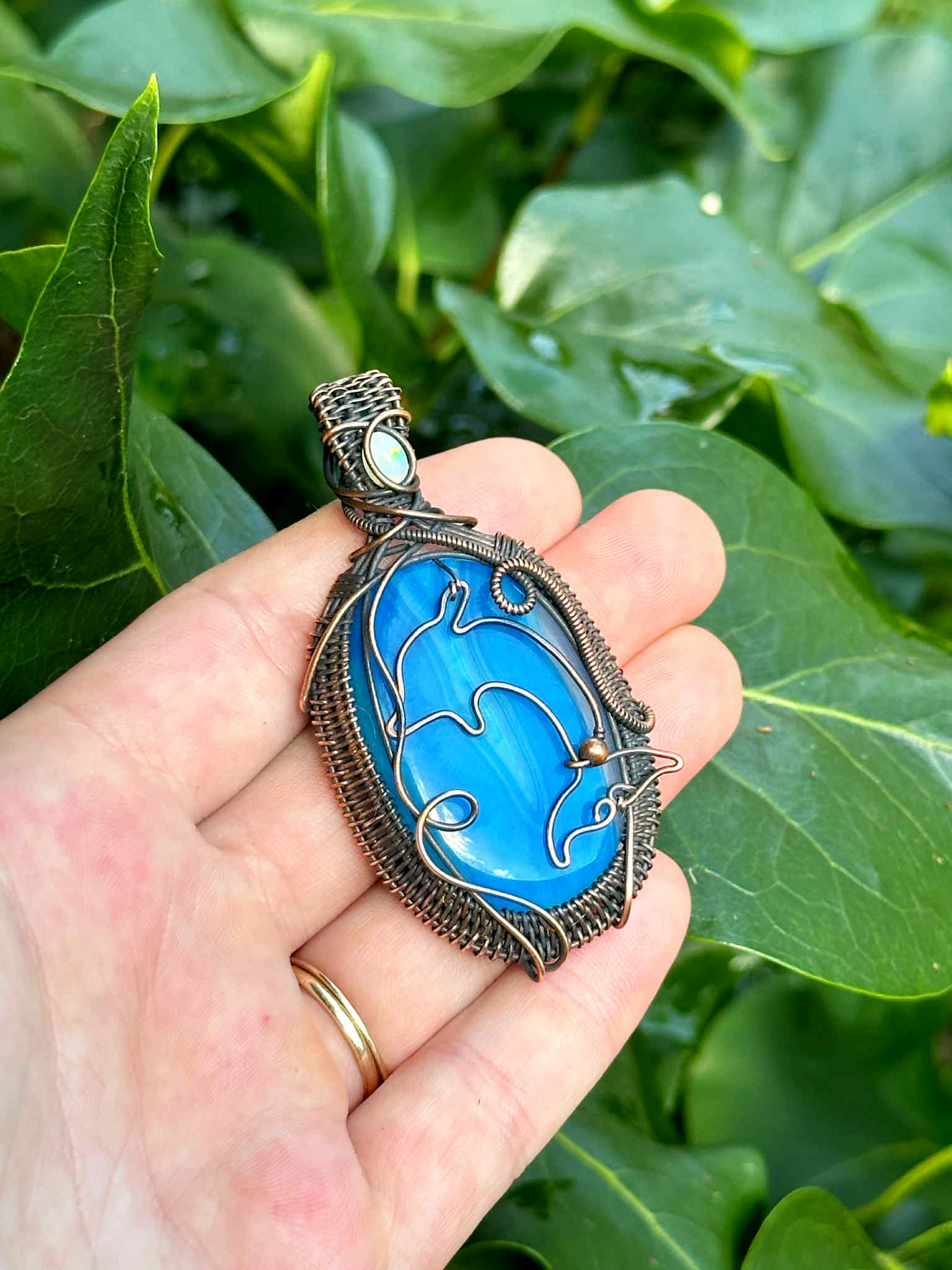 Dolphin Blue Banded Agate Crystal Copper Pendant