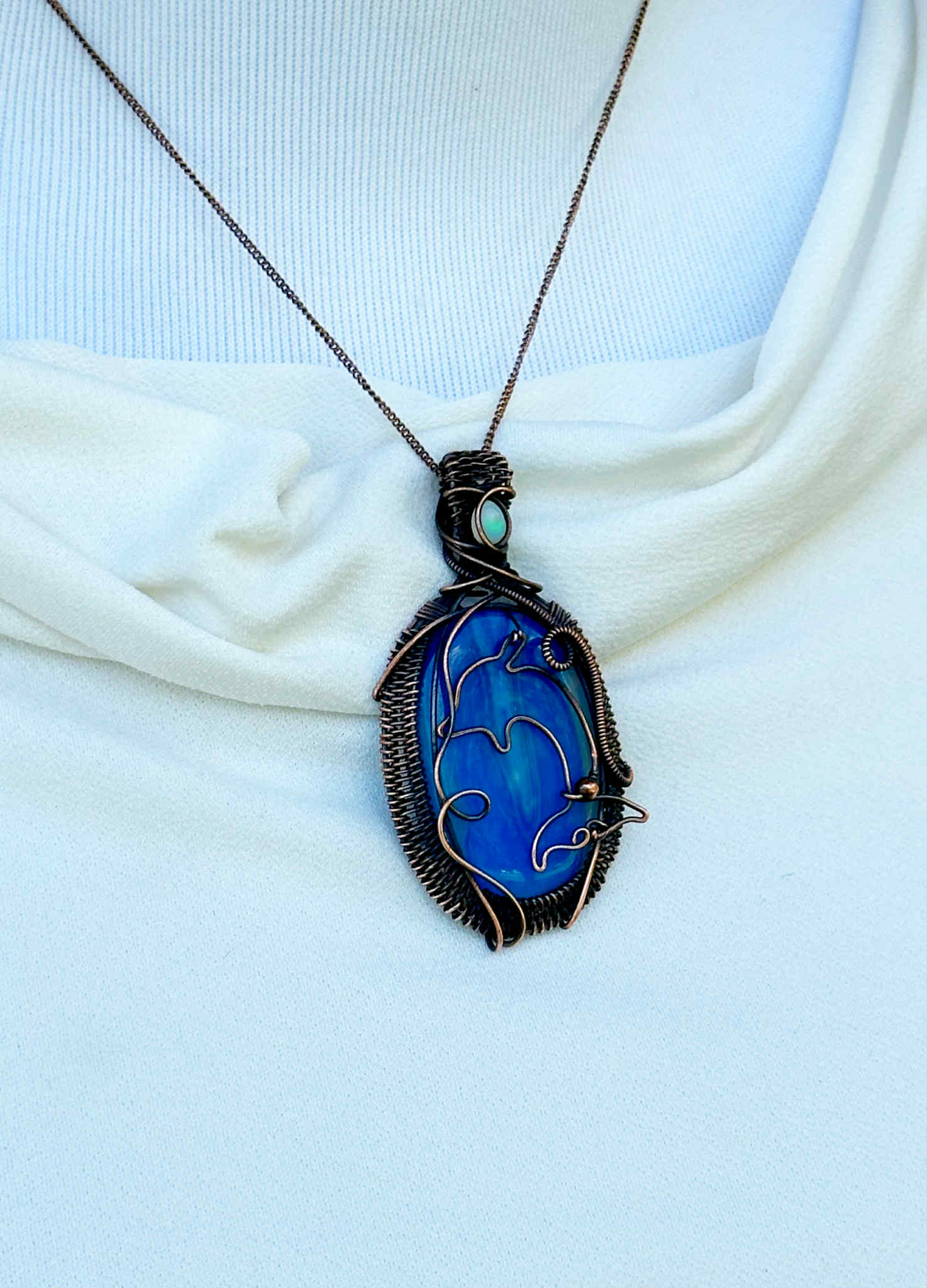 Wrapped in pure copper wire to enhance the stone’s calming blues with grounding, earthy warmth.