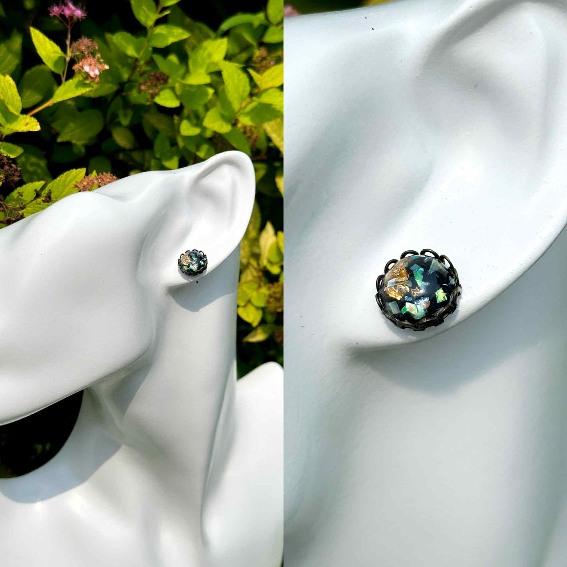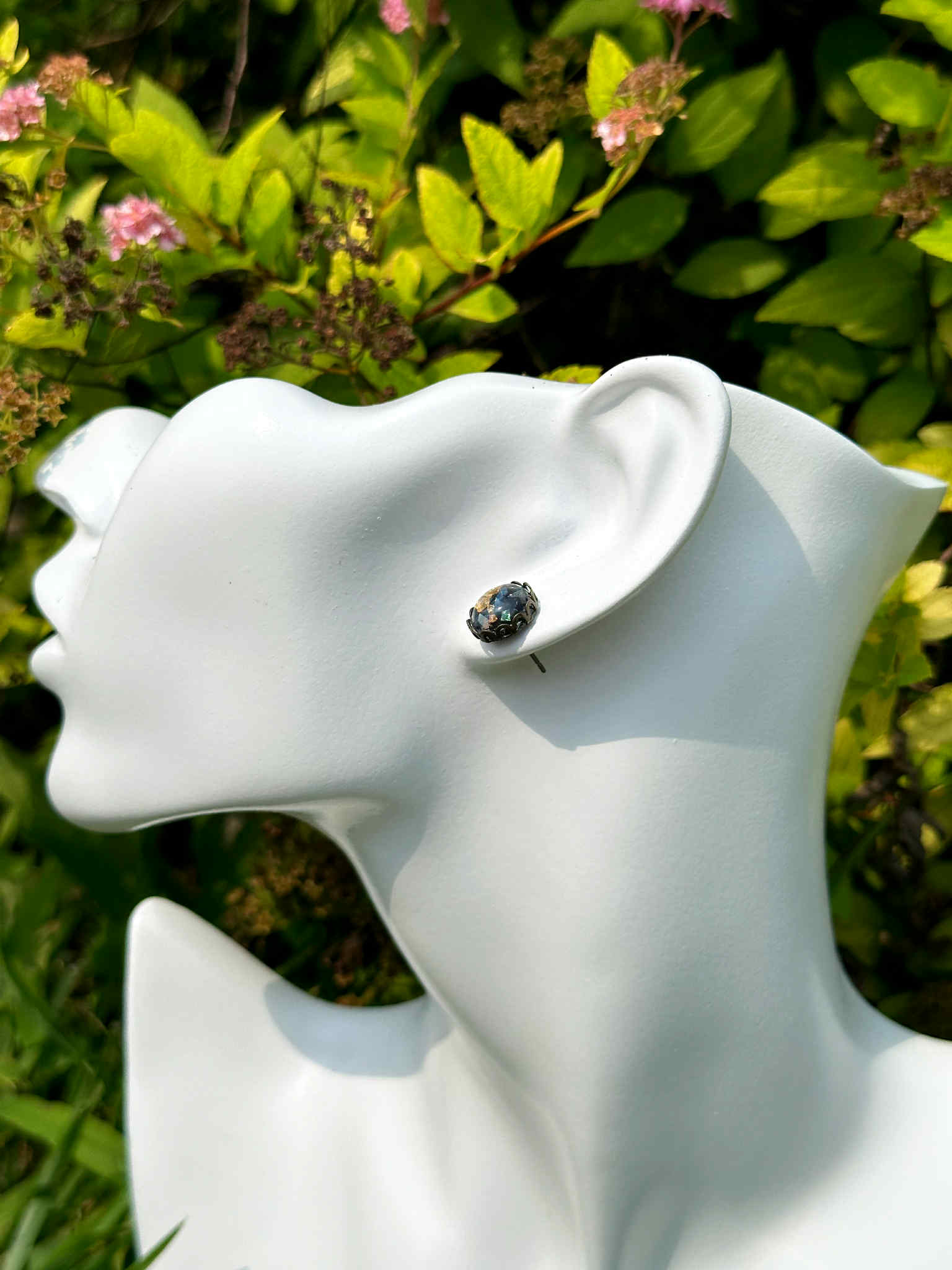 Bold and captivating, these earrings showcase the striking contrast of deep black druzy with shimmering golden accents. Druzy is celebrated as a symbol of light, positivity, and amplified energy, believed to inspire confidence, clarity, and emotional balance. The Golden Eclipse shade evokes mystery, elegance, and transformation—like a solar eclipse casting its radiant glow across the night sky. Perfect for adding a touch of drama and natural sparkle to any outfit, these earrings are both powerful and mesmerizing.