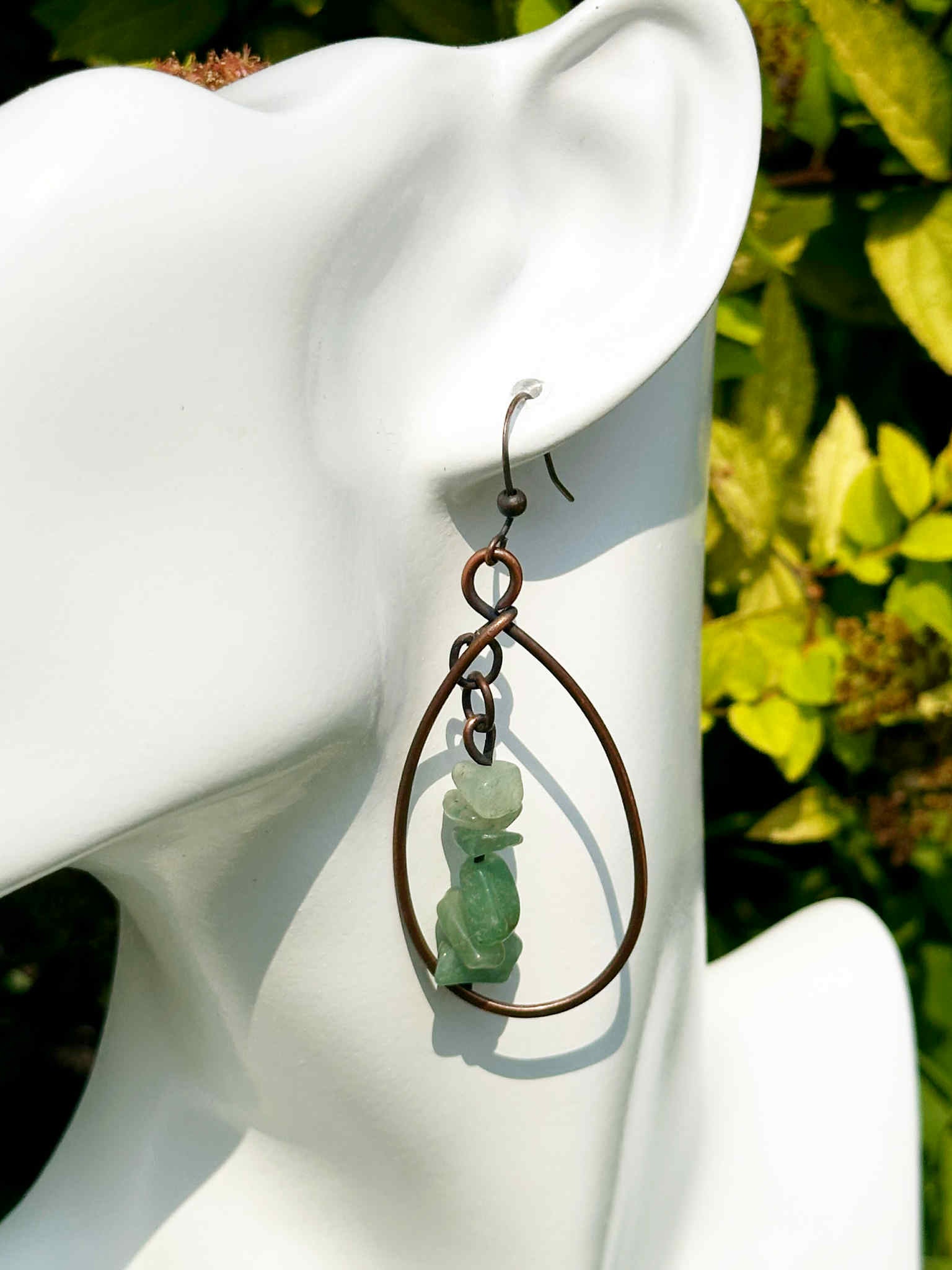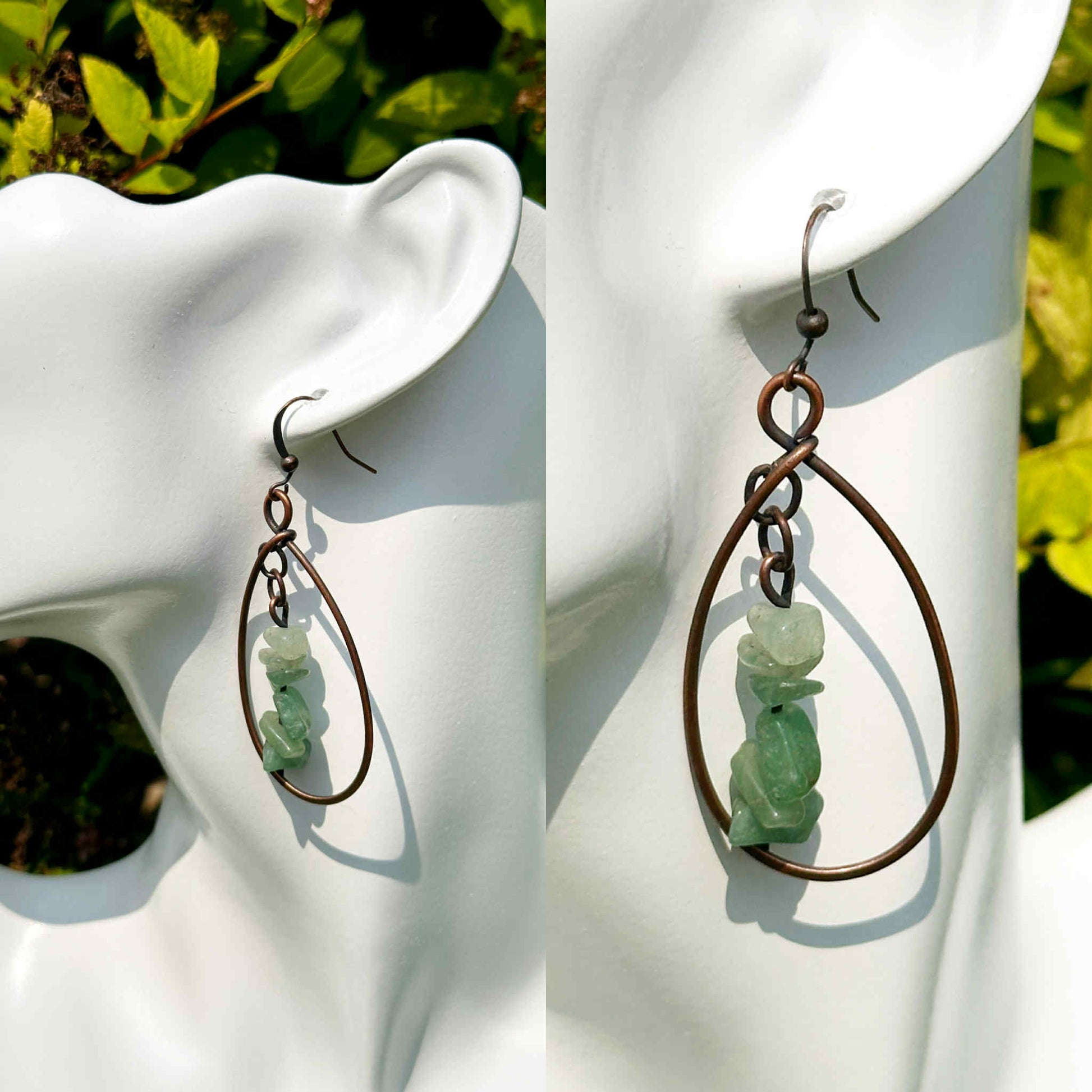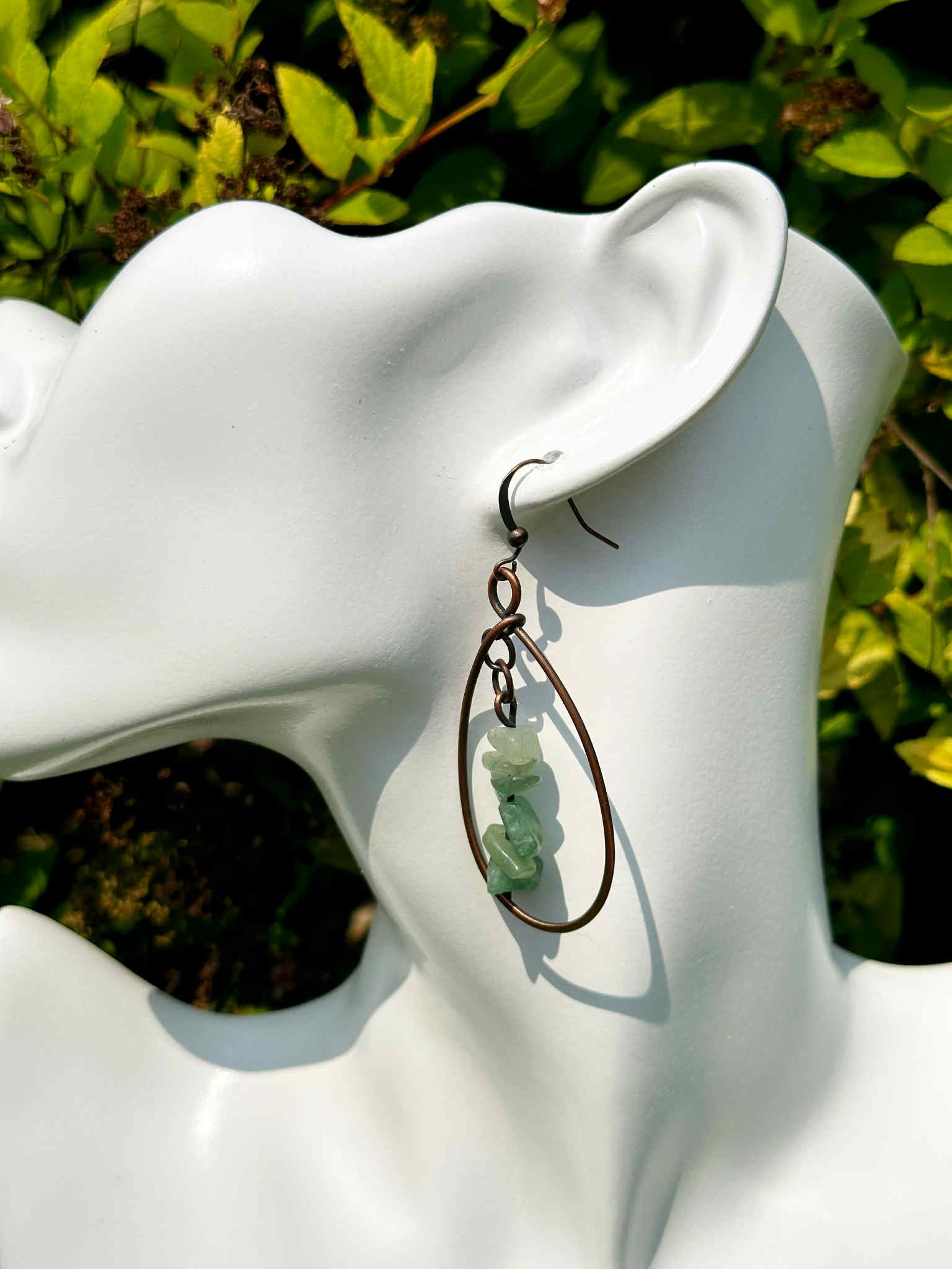Fresh and vibrant, these hoops blend the grounding warmth of copper with the uplifting energy of Green Chalcedony. Known as a stone of harmony and generosity, Green Chalcedony is believed to open the heart, encourage compassion, and promote emotional balance. Each crystal dangles gracefully from hand-formed copper hoops, creating a look that radiates both earthy elegance and soothing vitality. Wear them as a symbol of renewal, kindness, and inner strength.