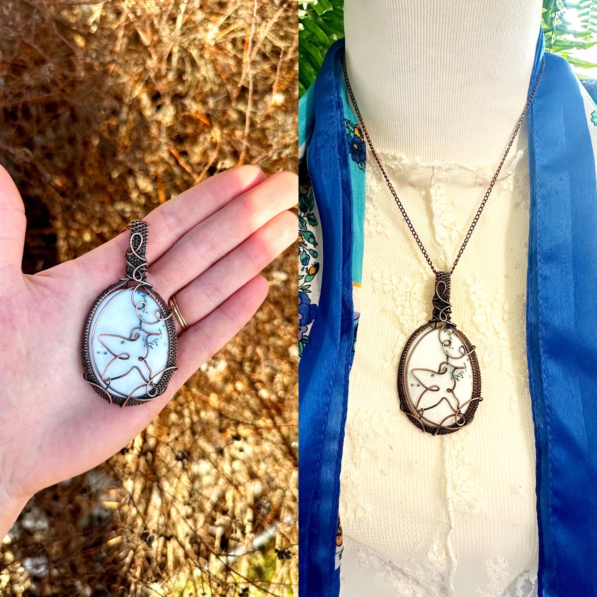 • Wrapped in 100% natural copper wire, copper amplifies the crystal’s energy. Known for its conductive properties, copper enhances the grounding and healing vibrations of Moss Agate, supporting your emotional and physical well-being.