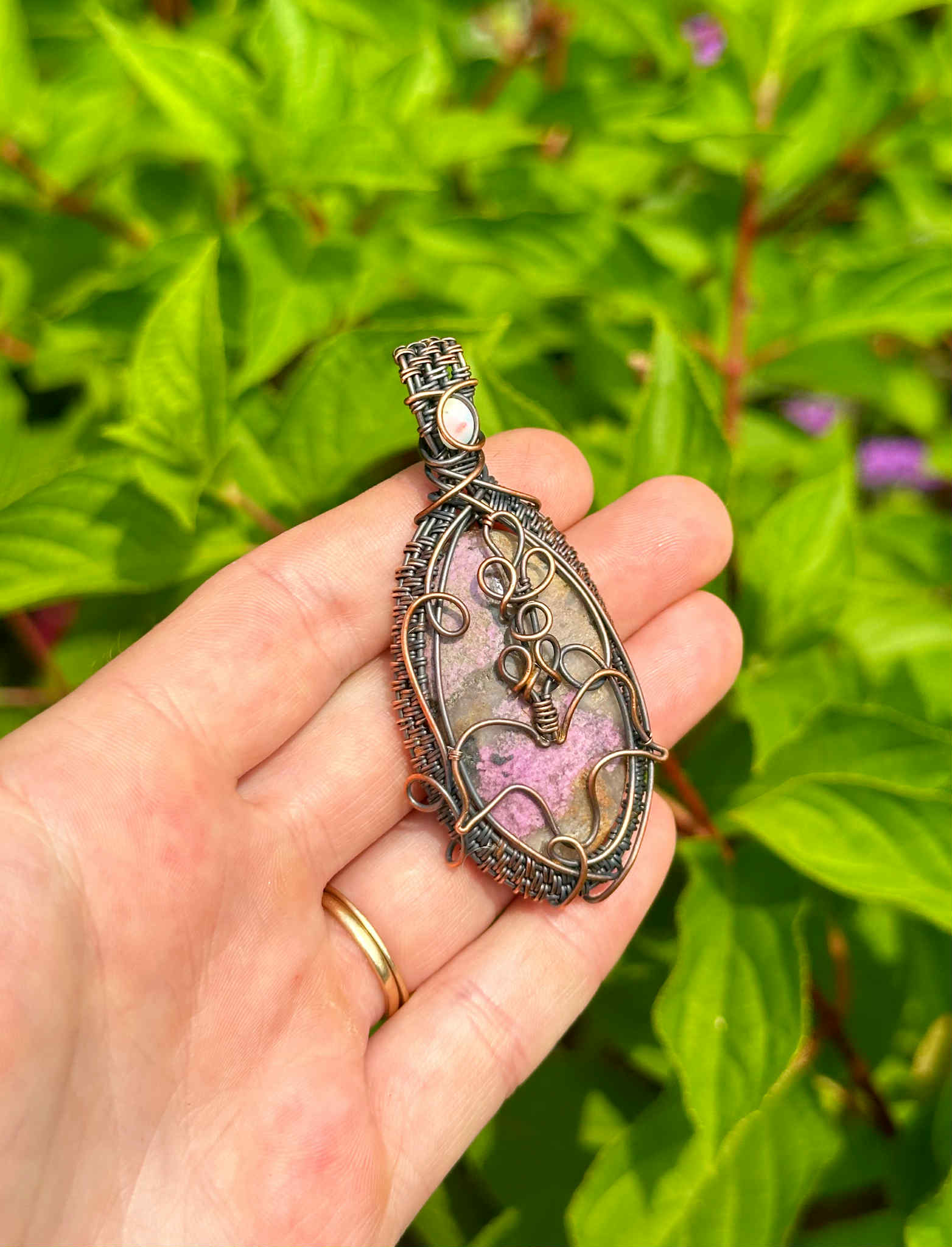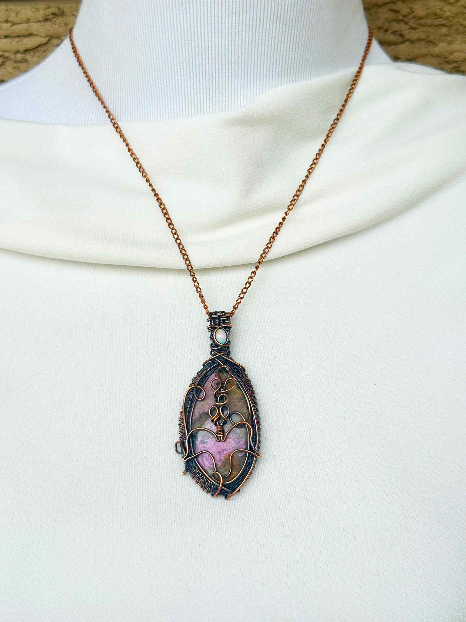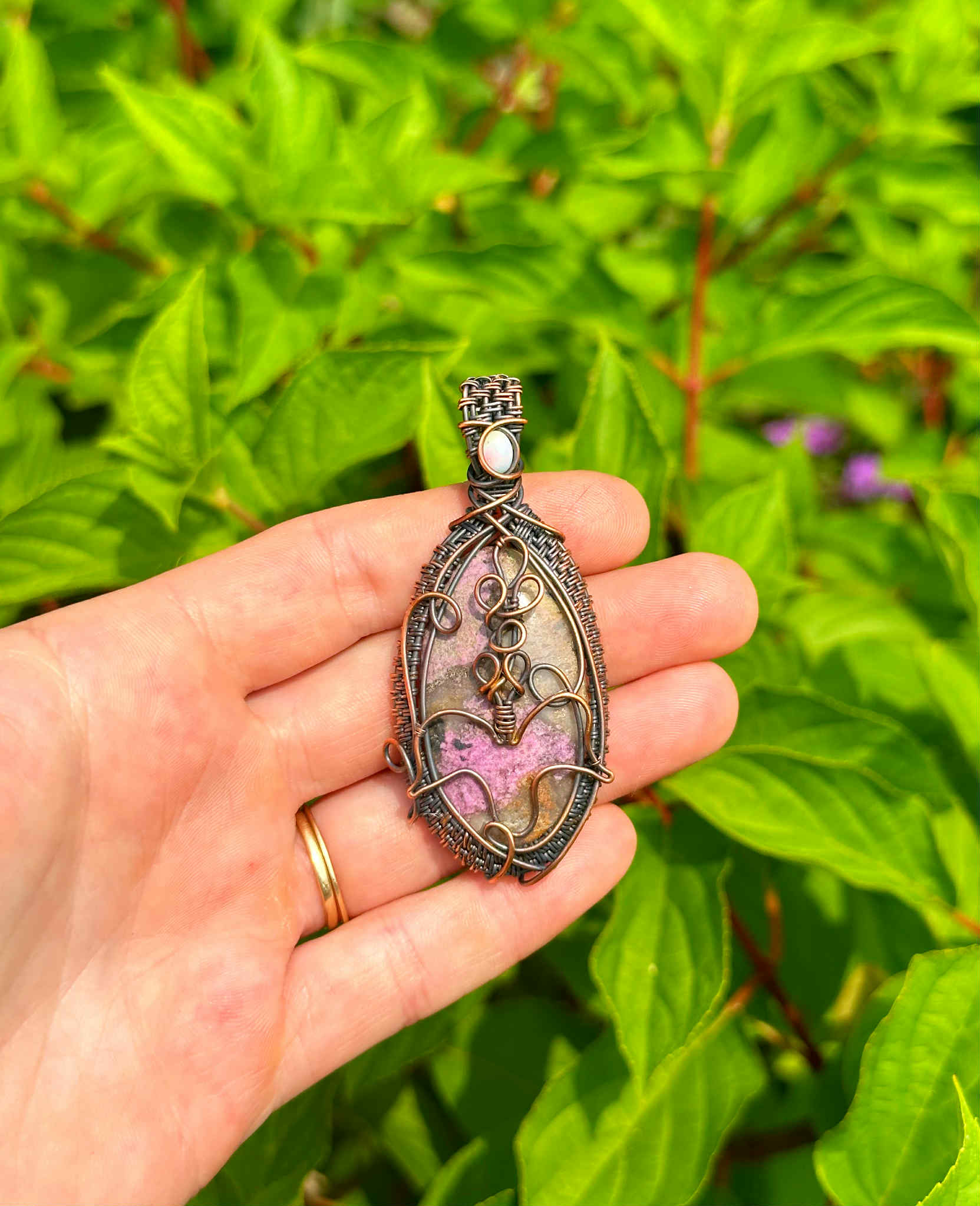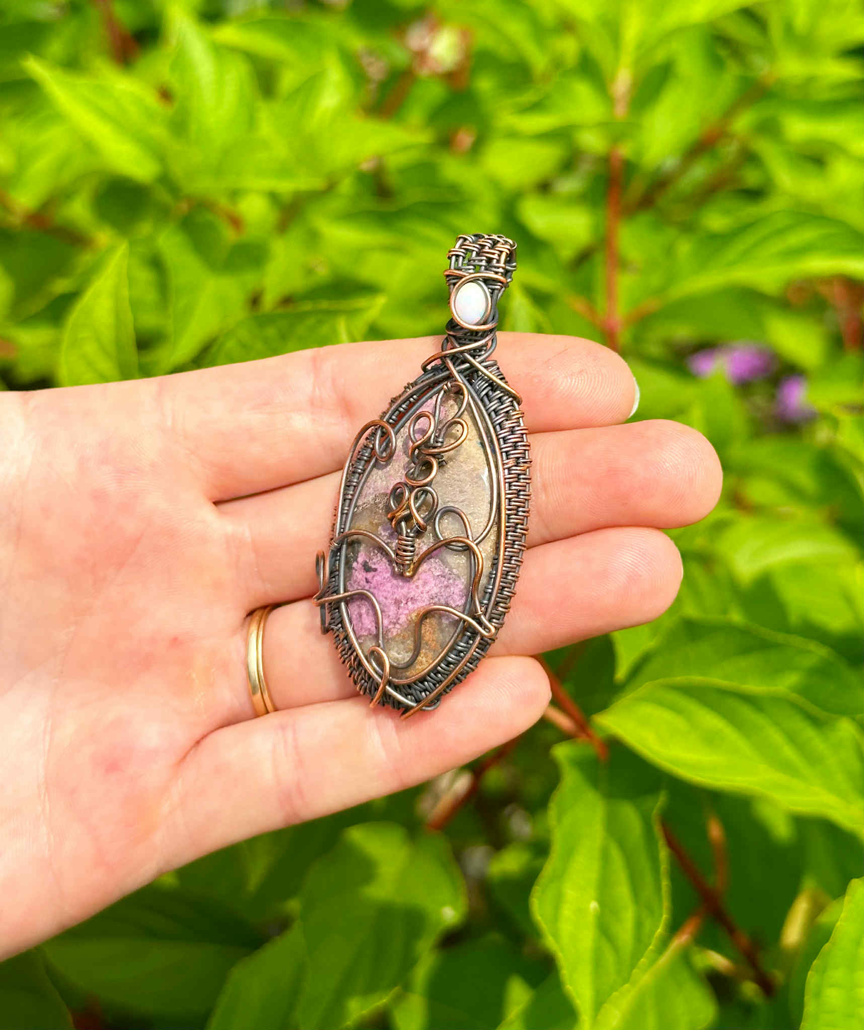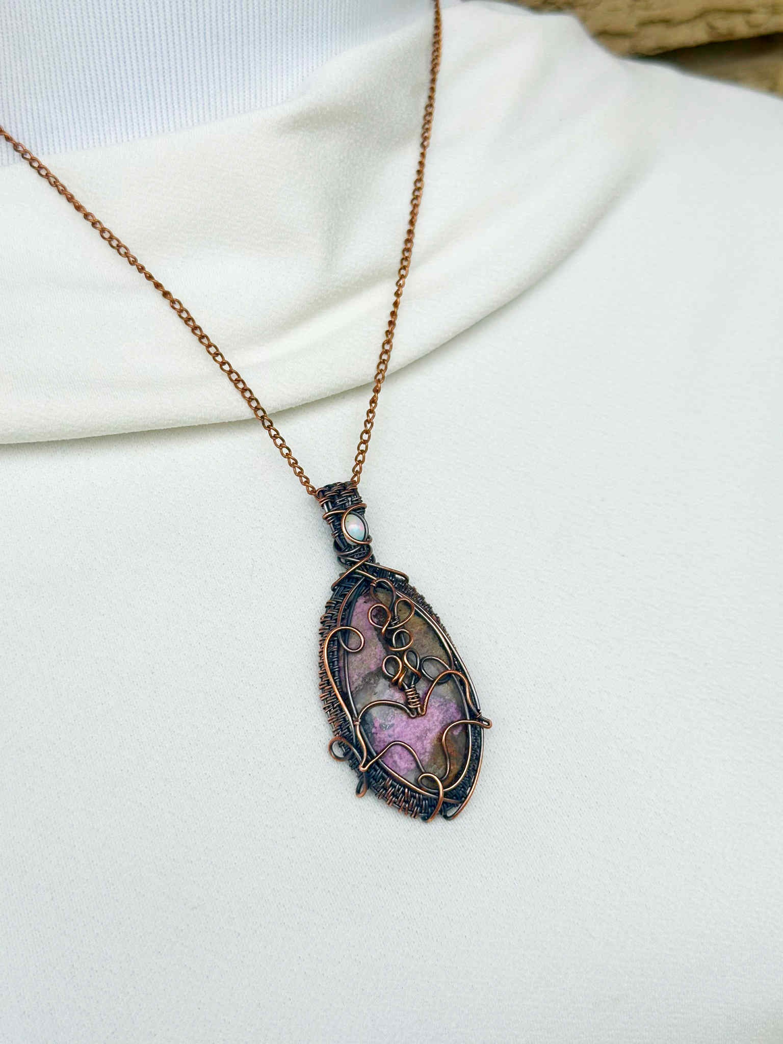 Wrapped in pure copper wire to harmonize the stone’s nurturing energy with grounding warmth.