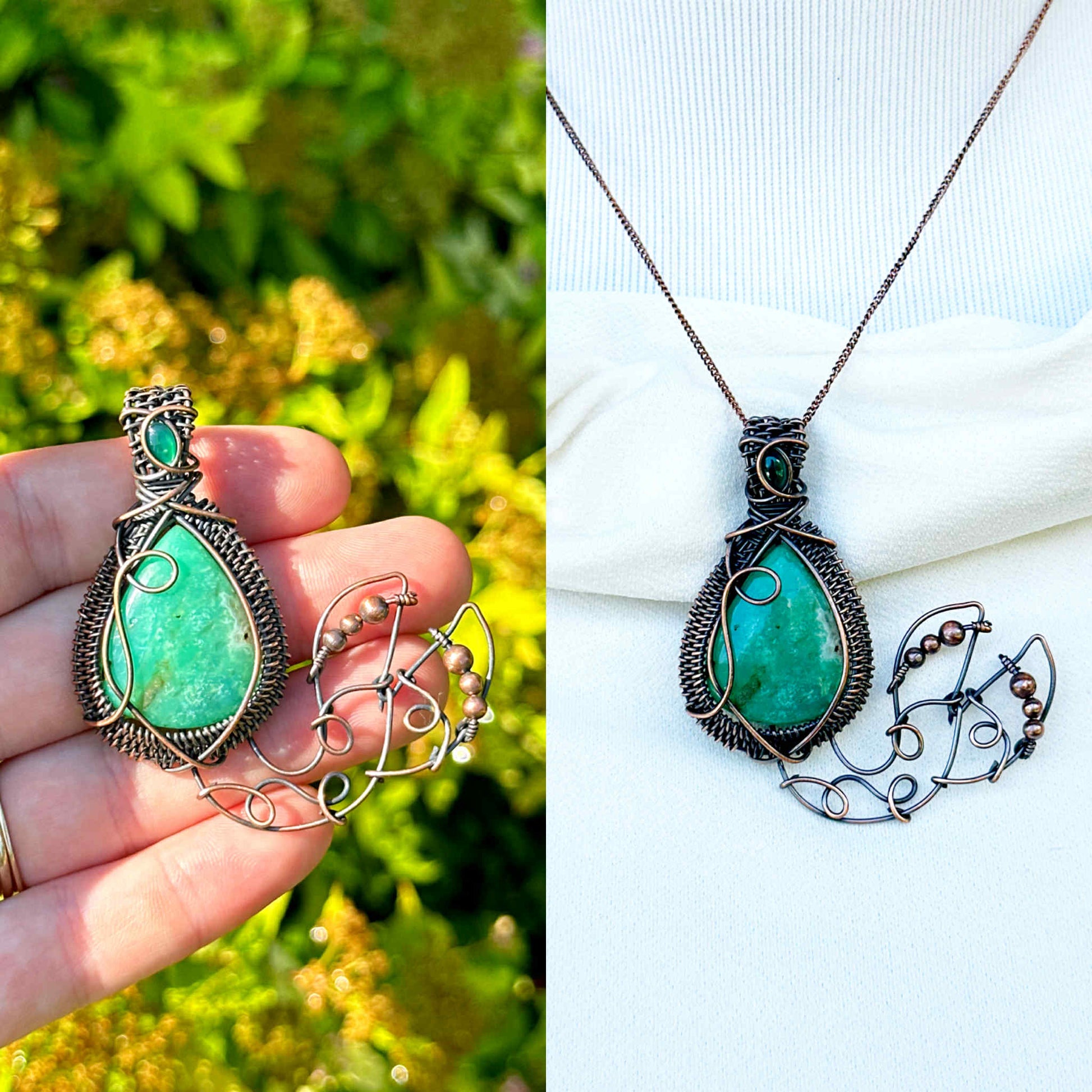 Mermaid Double Chrysoprase & Emerald Crystal Copper Pendant