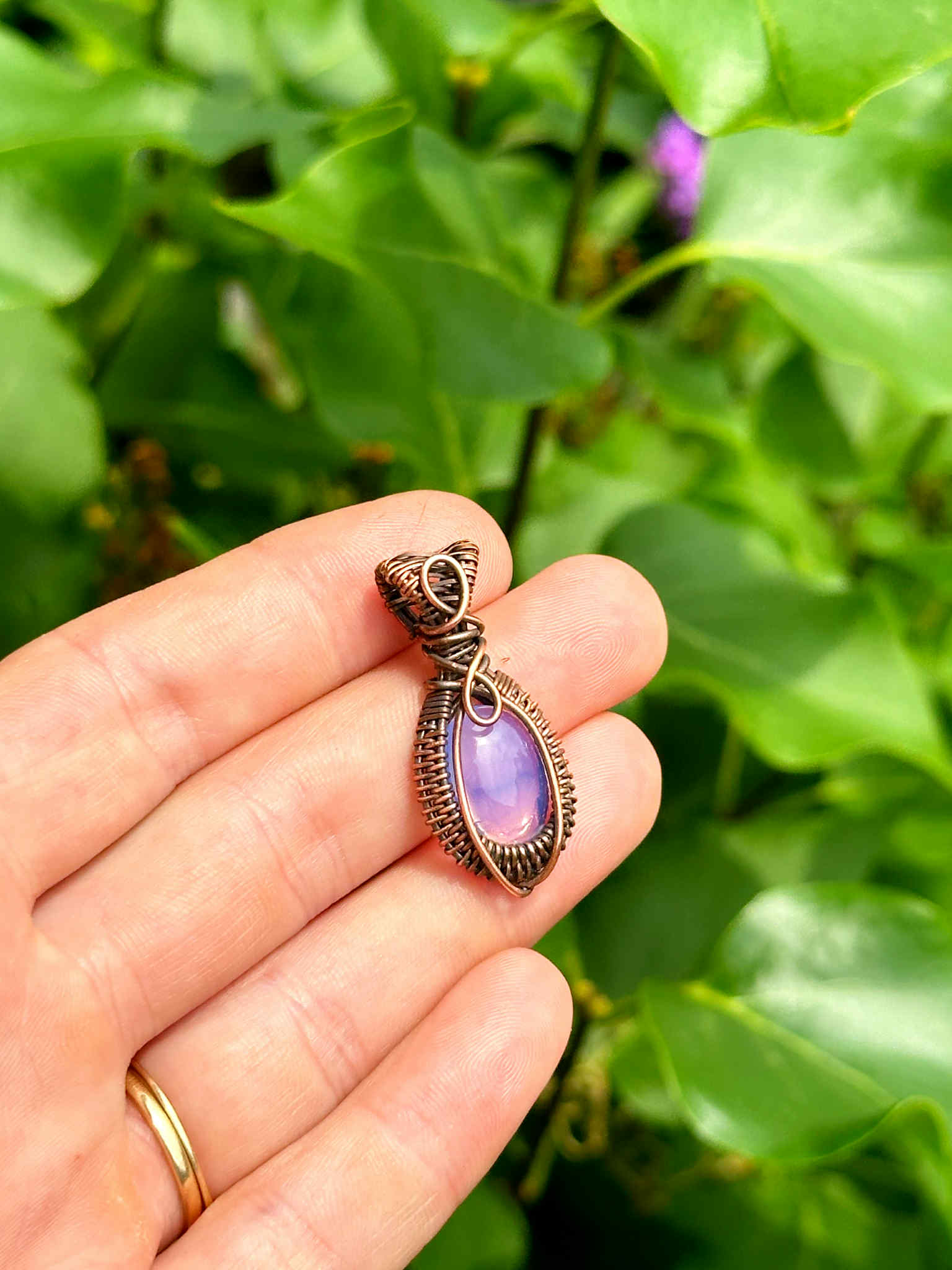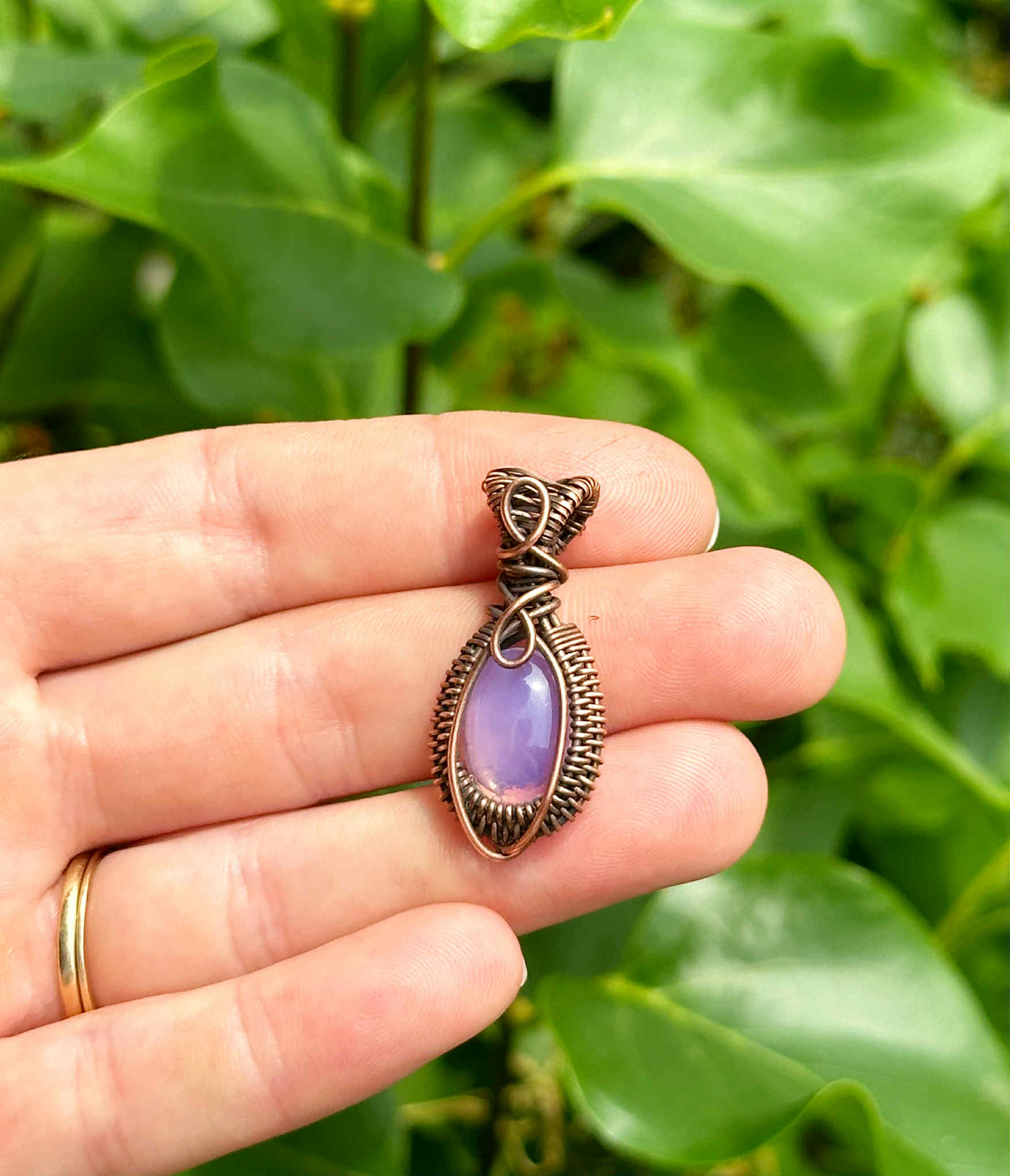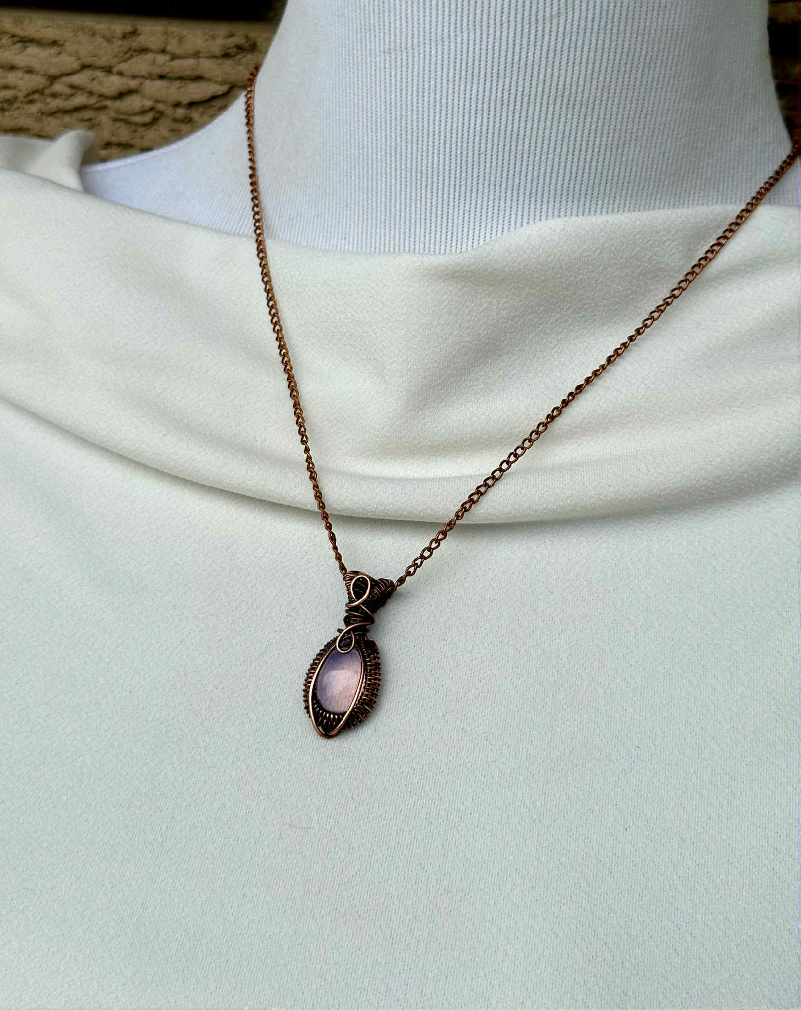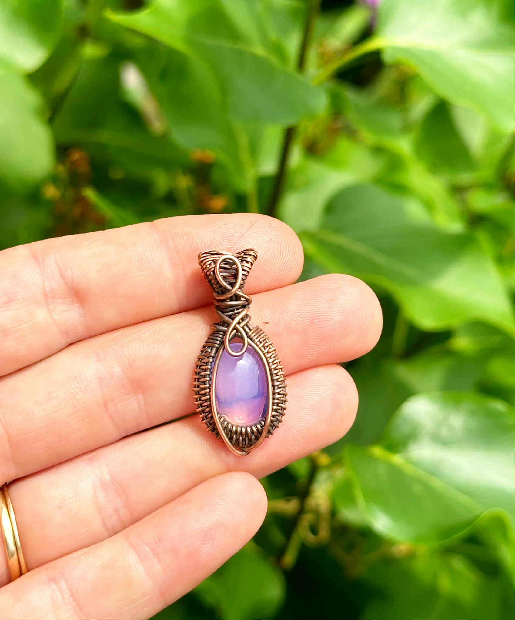 Wrapped in pure copper wire to harmonize the stone’s soothing energy with grounding warmth.