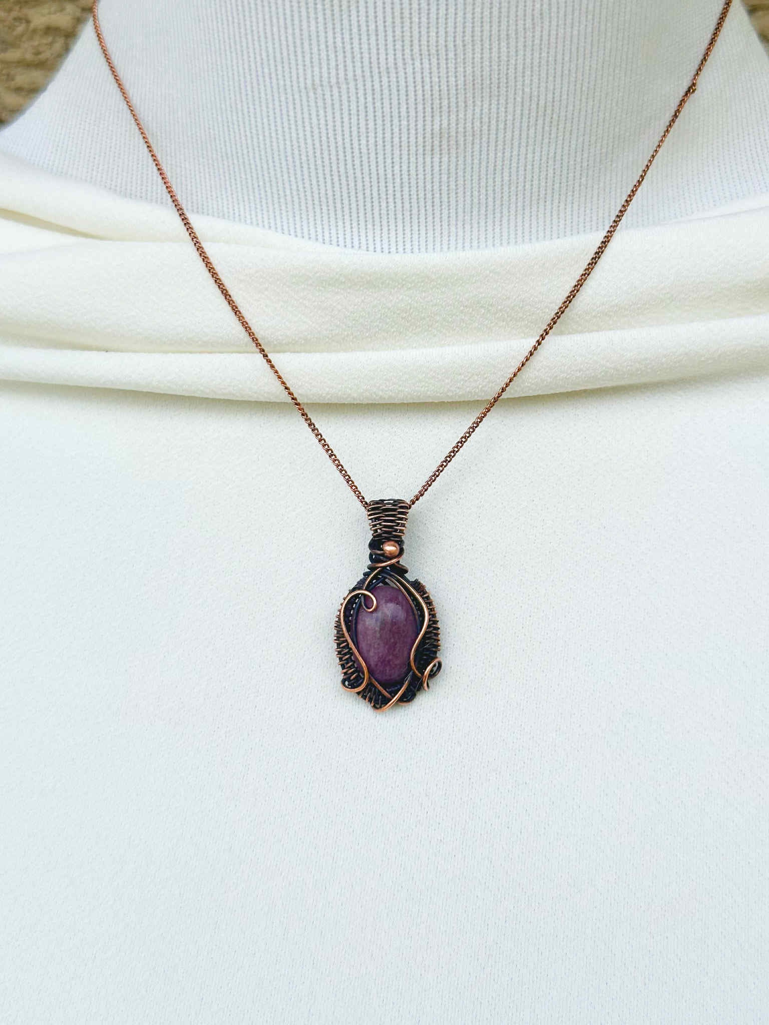 Wrapped in pure copper wire to amplify the stone’s calming energy and provide grounding warmth.