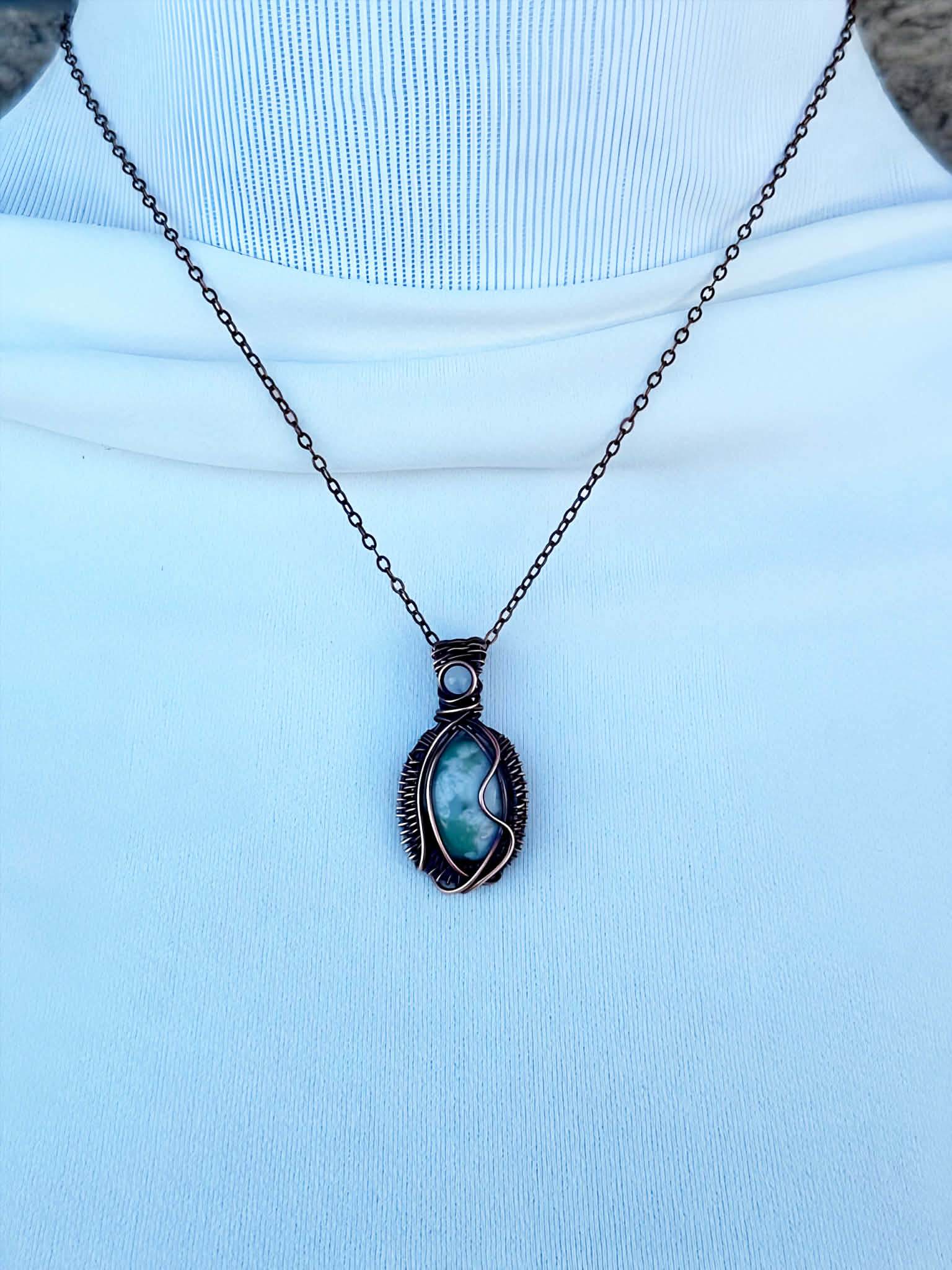Mini Peace Jade & Clear Quartz Crystal Copper Pendant