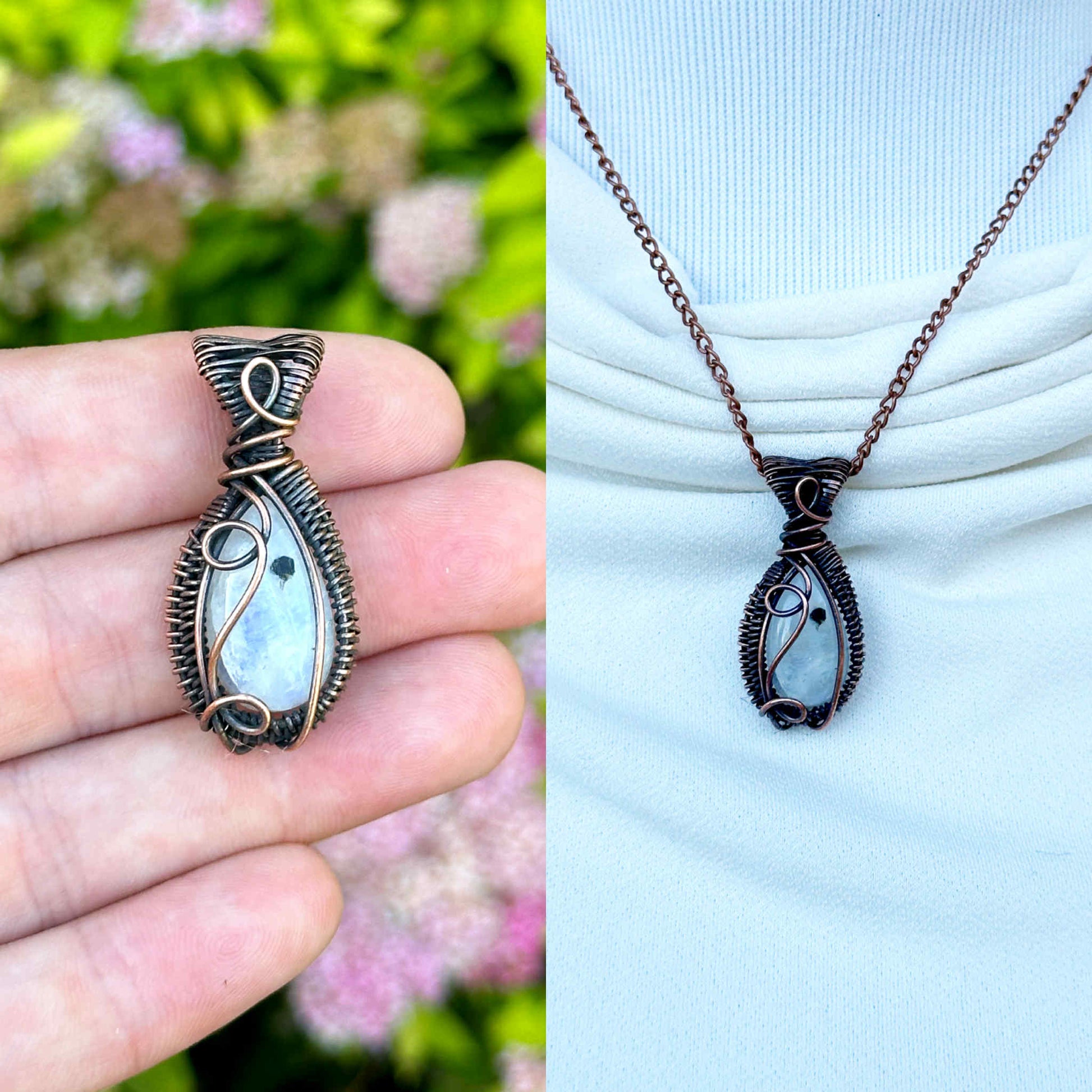 Mini Rainbow Moonstone Crystal Copper Pendant