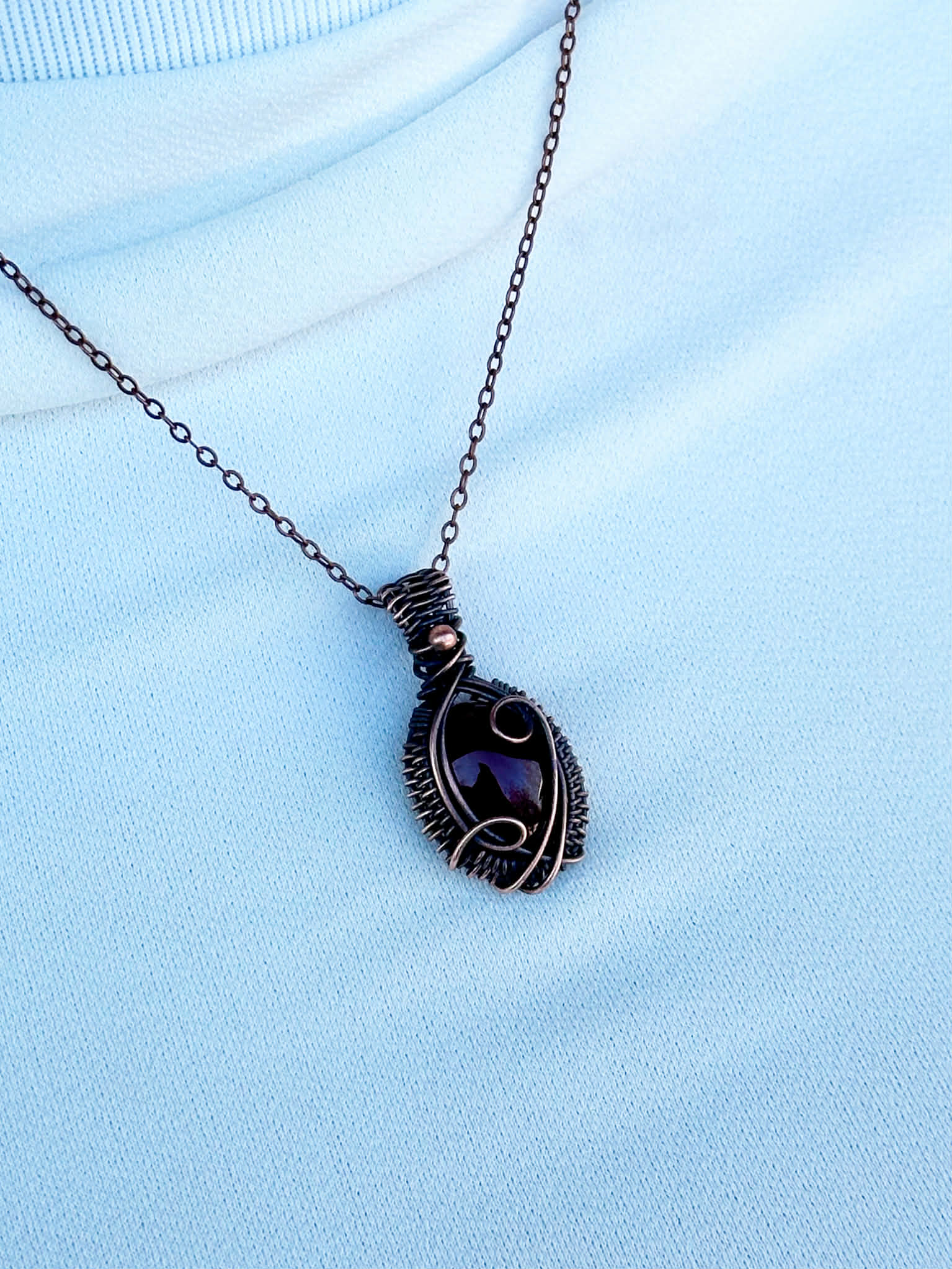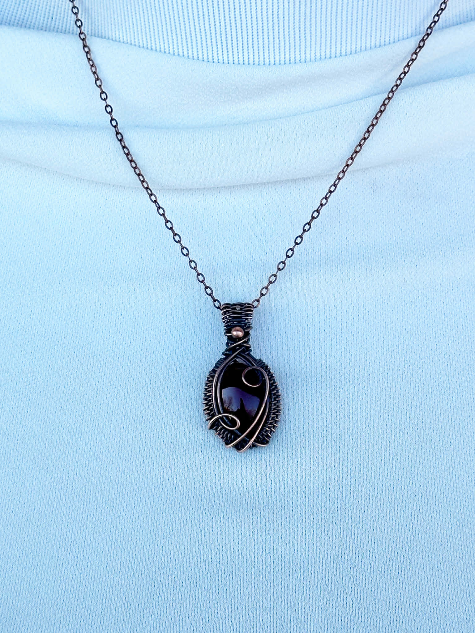 Suspended from a matching copper chain for durability, comfort, and timeless wear.