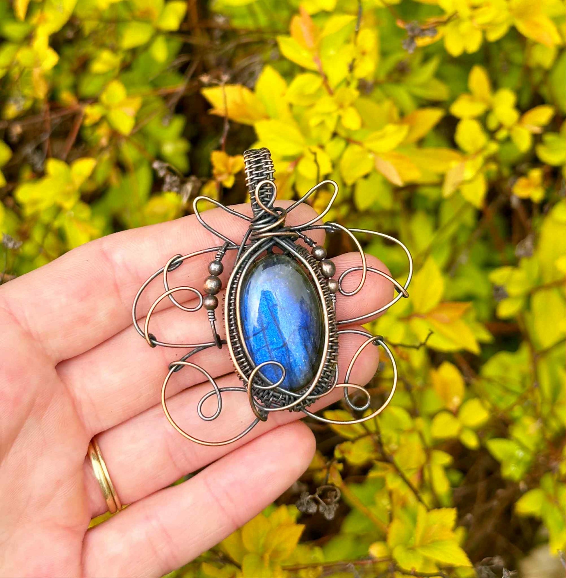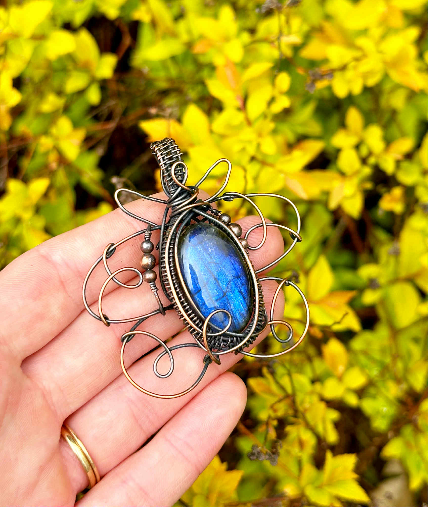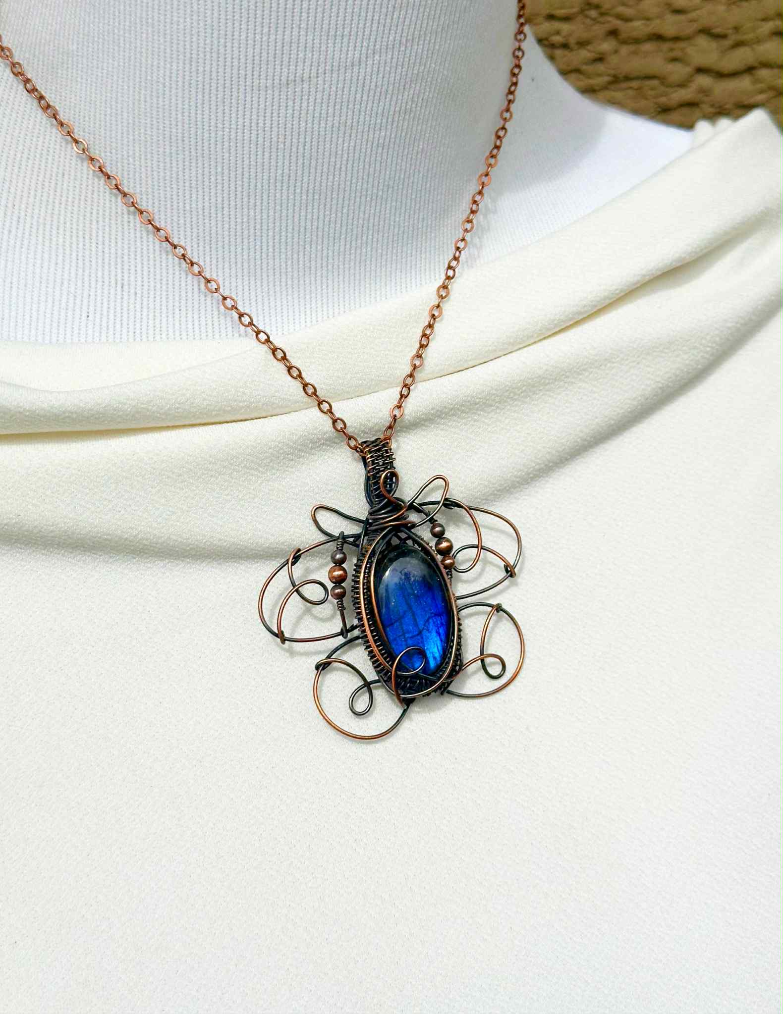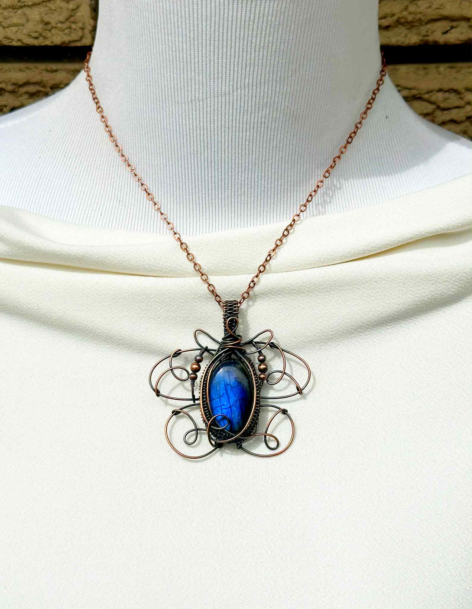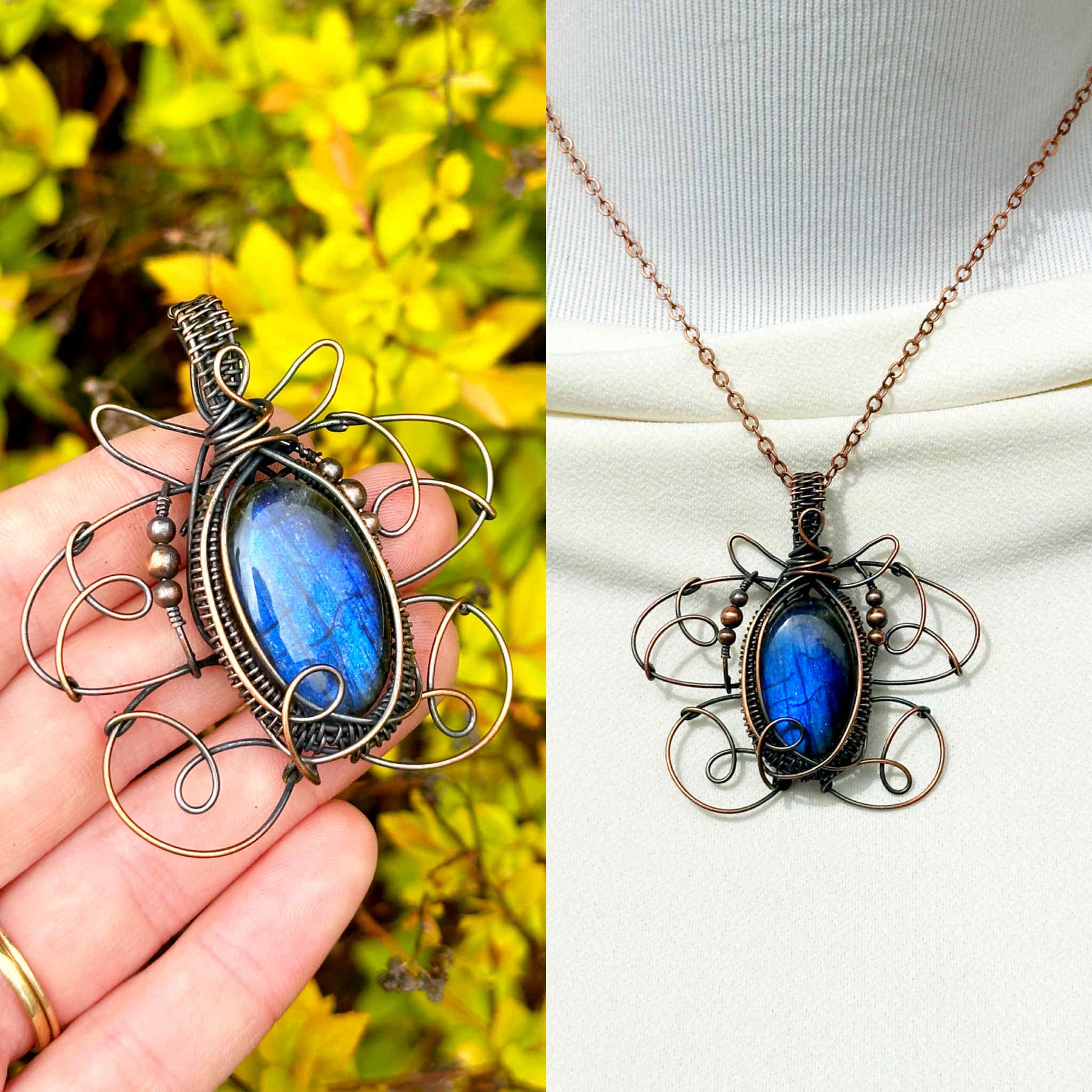 Morpho Blue Butterfly Labradorite Crystal Copper Pendant