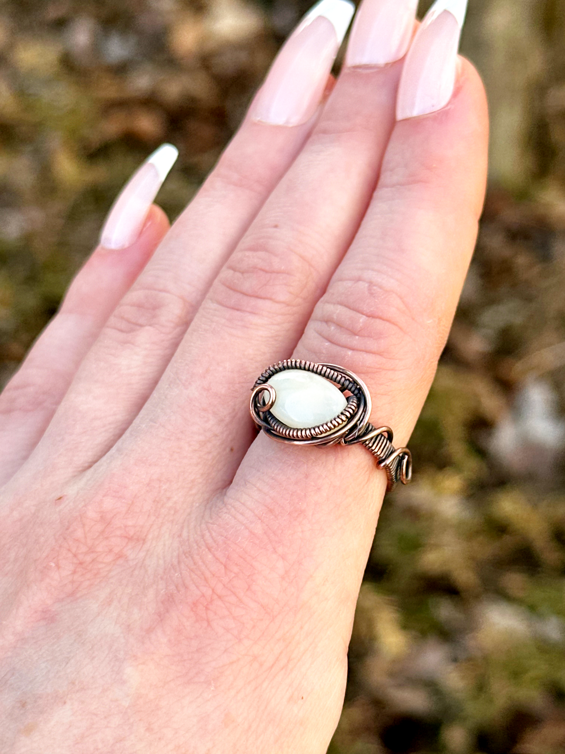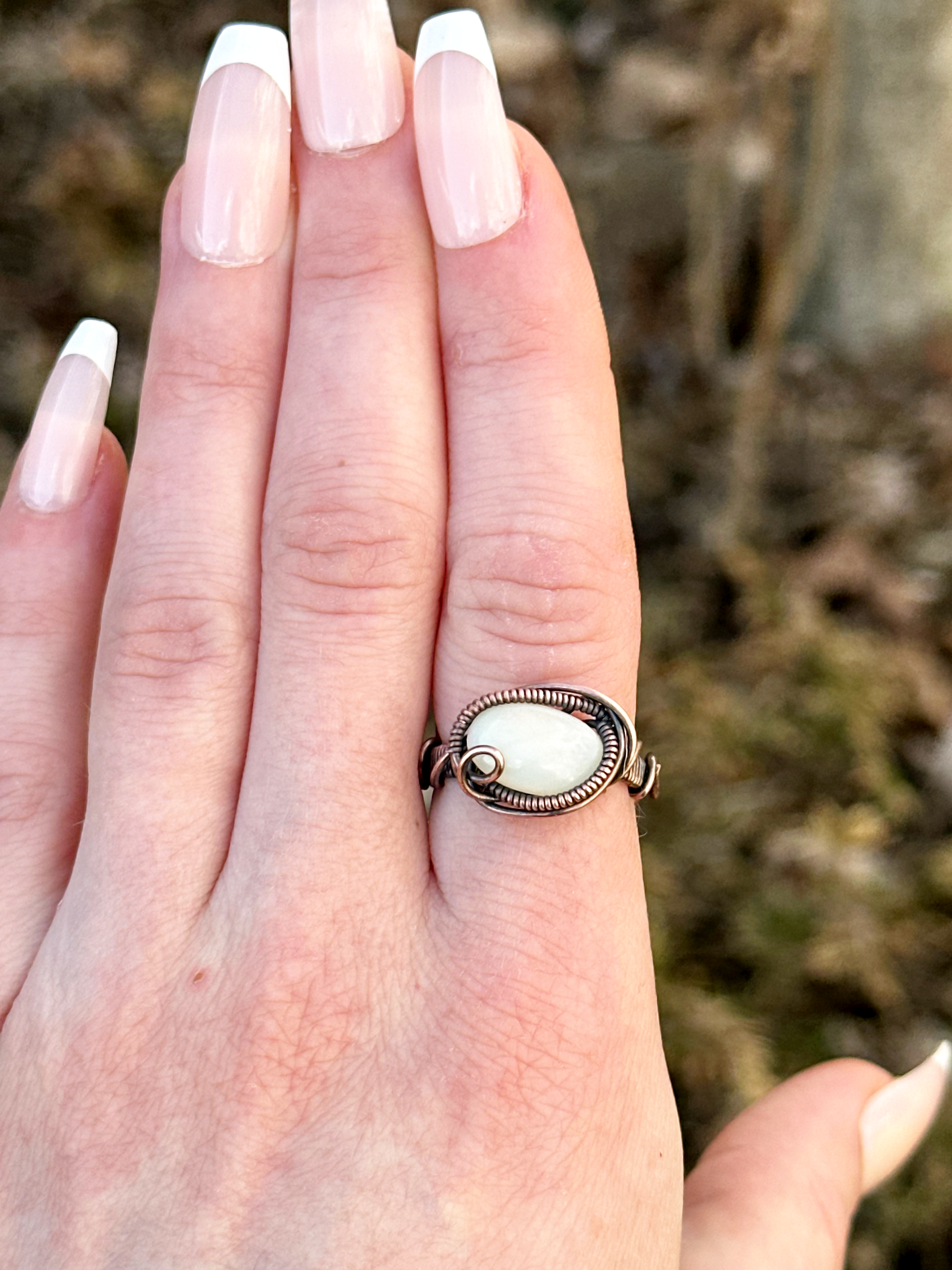Discover the Alluring Opal Radiance Ring, a size 7 marvel crafted to enchant and inspire. This breathtaking ring showcases a vibrant, ethically sourced opal, prized for its dazzling play of color—alive with shimmering bursts of aquamarine, crimson, and molten topaz that dance in the light. The opal is masterfully bezel-set in warm, hand-forged copper, its earthy, rosy hue enhancing the stone’s celestial glow. The copper band, polished to a gentle sheen, features intricate, hand-etched patterns that evoke timeless artistry, offering both comfort and durability for effortless everyday wear. Each ring is meticulously handcrafted, ensuring a one-of-a-kind creation that blends bohemian elegance with enduring sophistication. Perfect for those who seek jewelry with soul, the Opal Radiance Ring is a bold celebration of individuality, poised to elevate any outfit or moment. Embrace the magic of opal and the heartfelt warmth of copper in this unforgettable size 7 treasure.