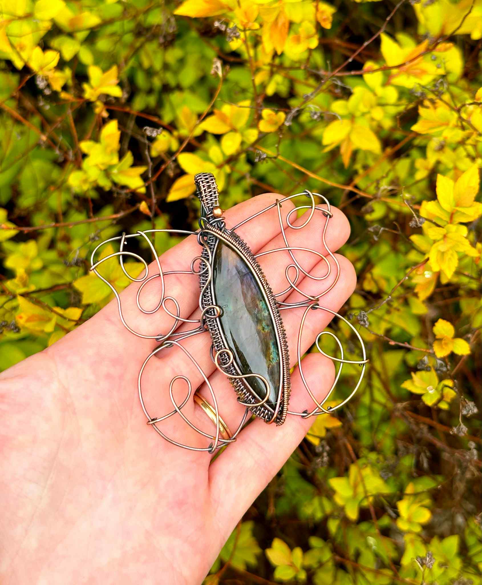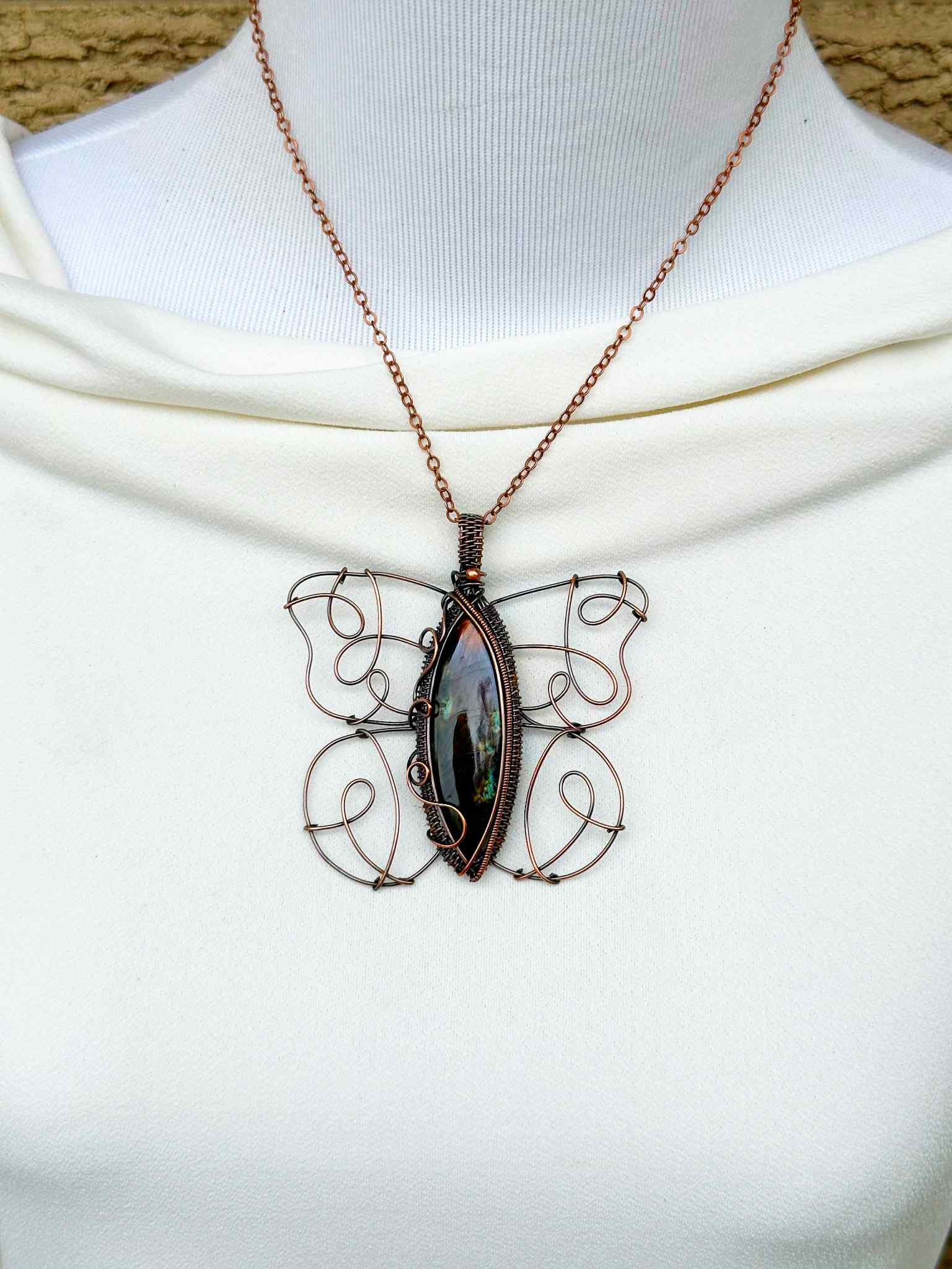 Peacock Butterfly Labradorite Crystal Copper Pendant