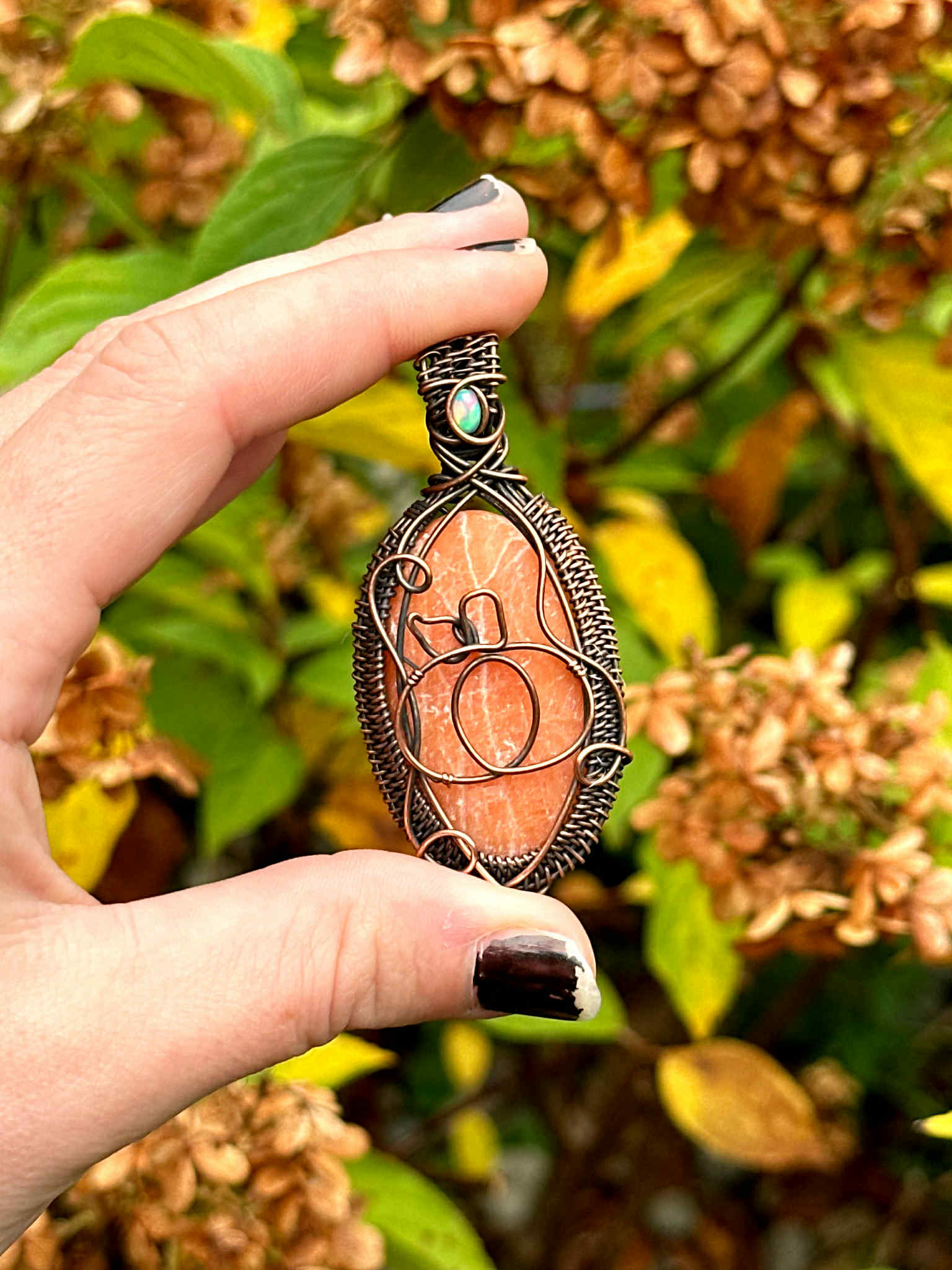 Pumpkin Orange Calcite & Opal Crystal Copper Pendant