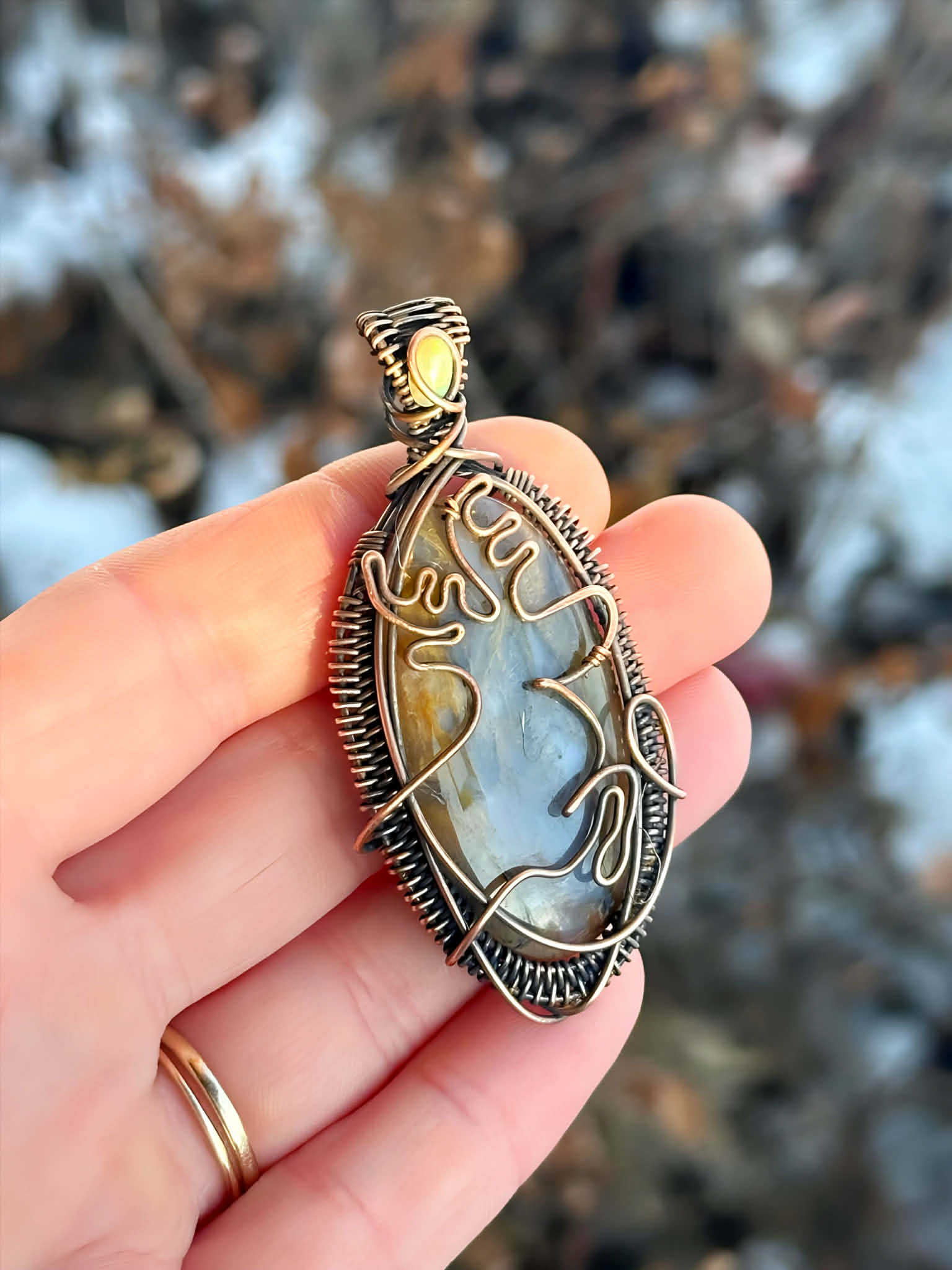 Reindeer Moss Agate & Opal Accent Crystal Copper Pendant