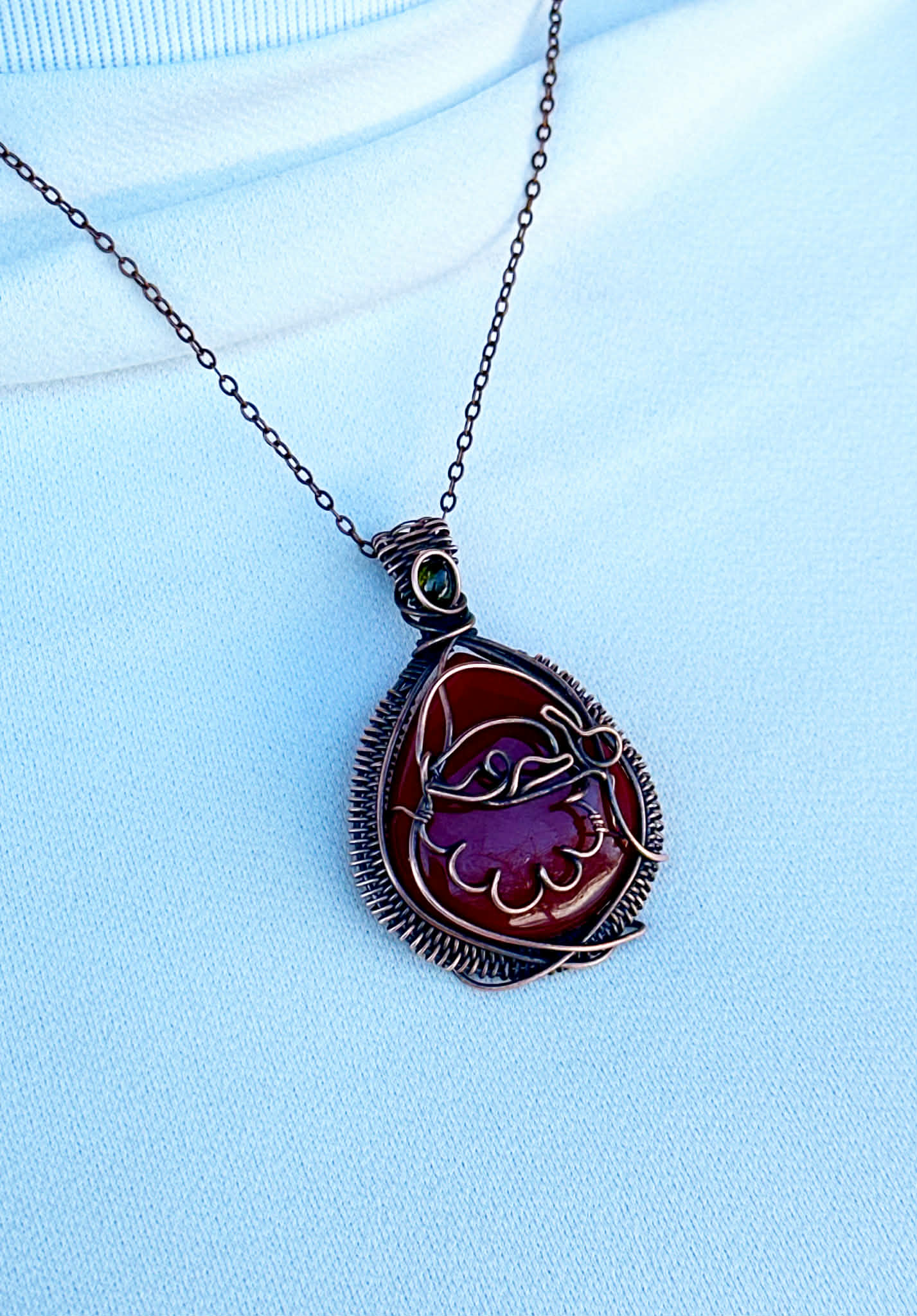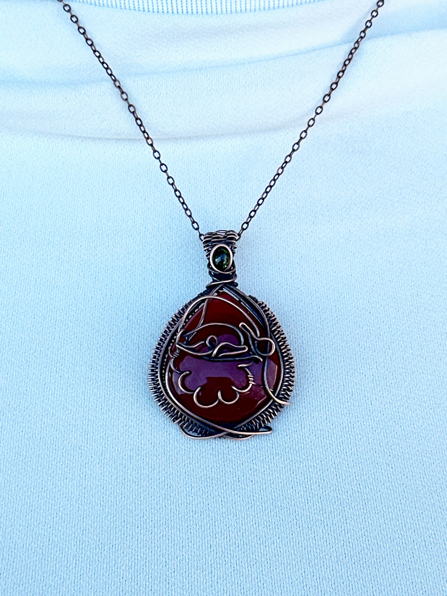 Santa Claus Red Onyx & Green Tourmaline Accent Crystal Copper Pendant