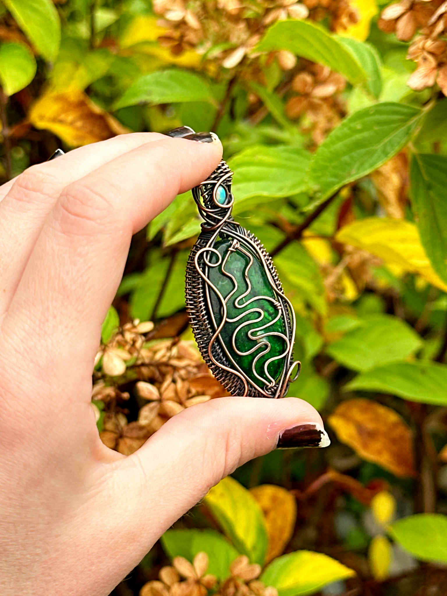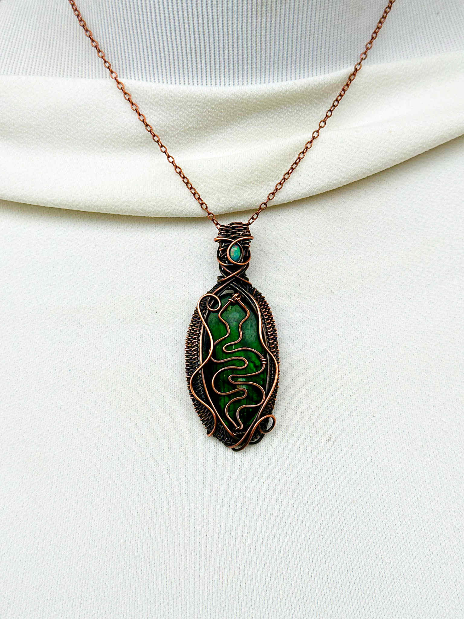 Suspended from a matching copper chain for durability, harmony, and smooth movement.