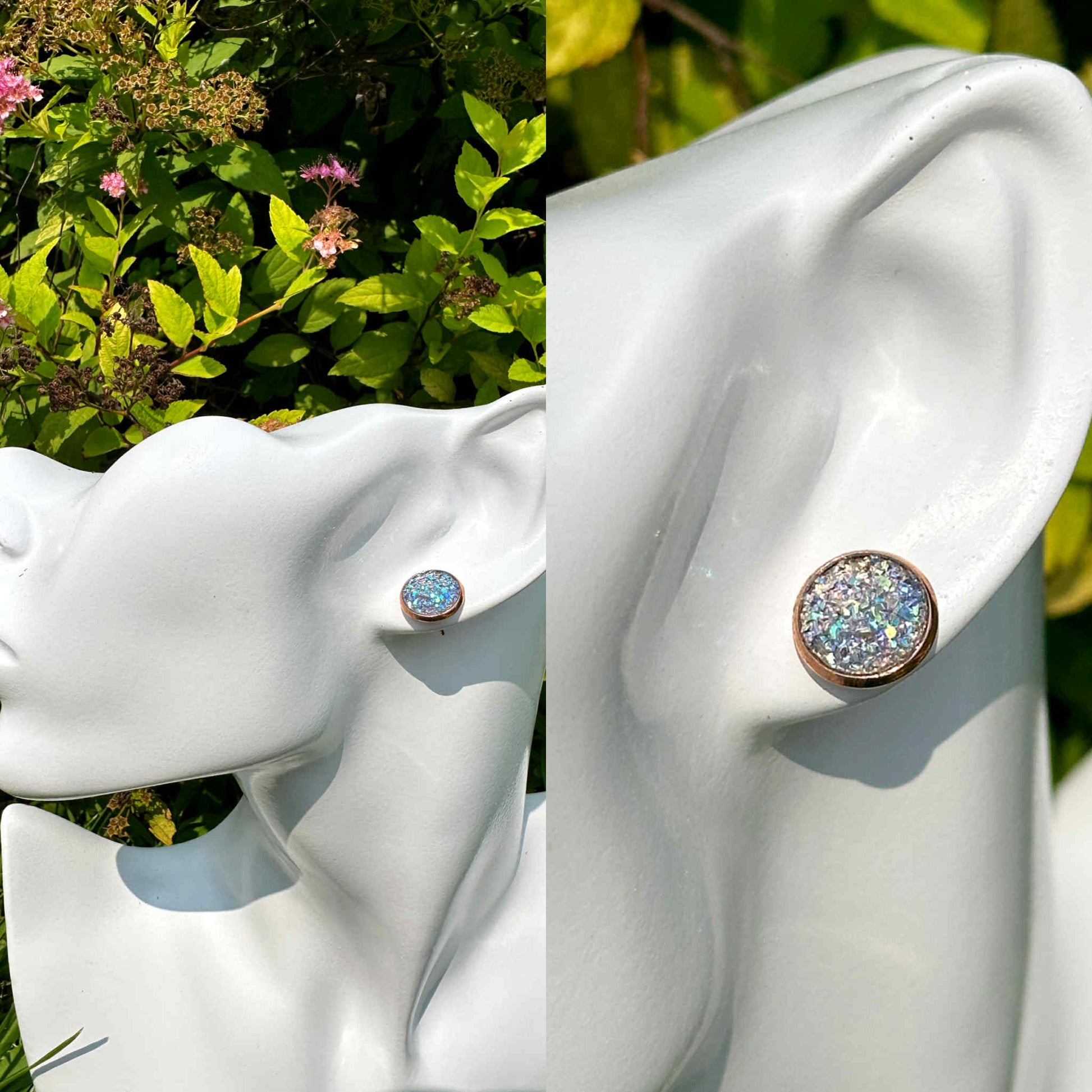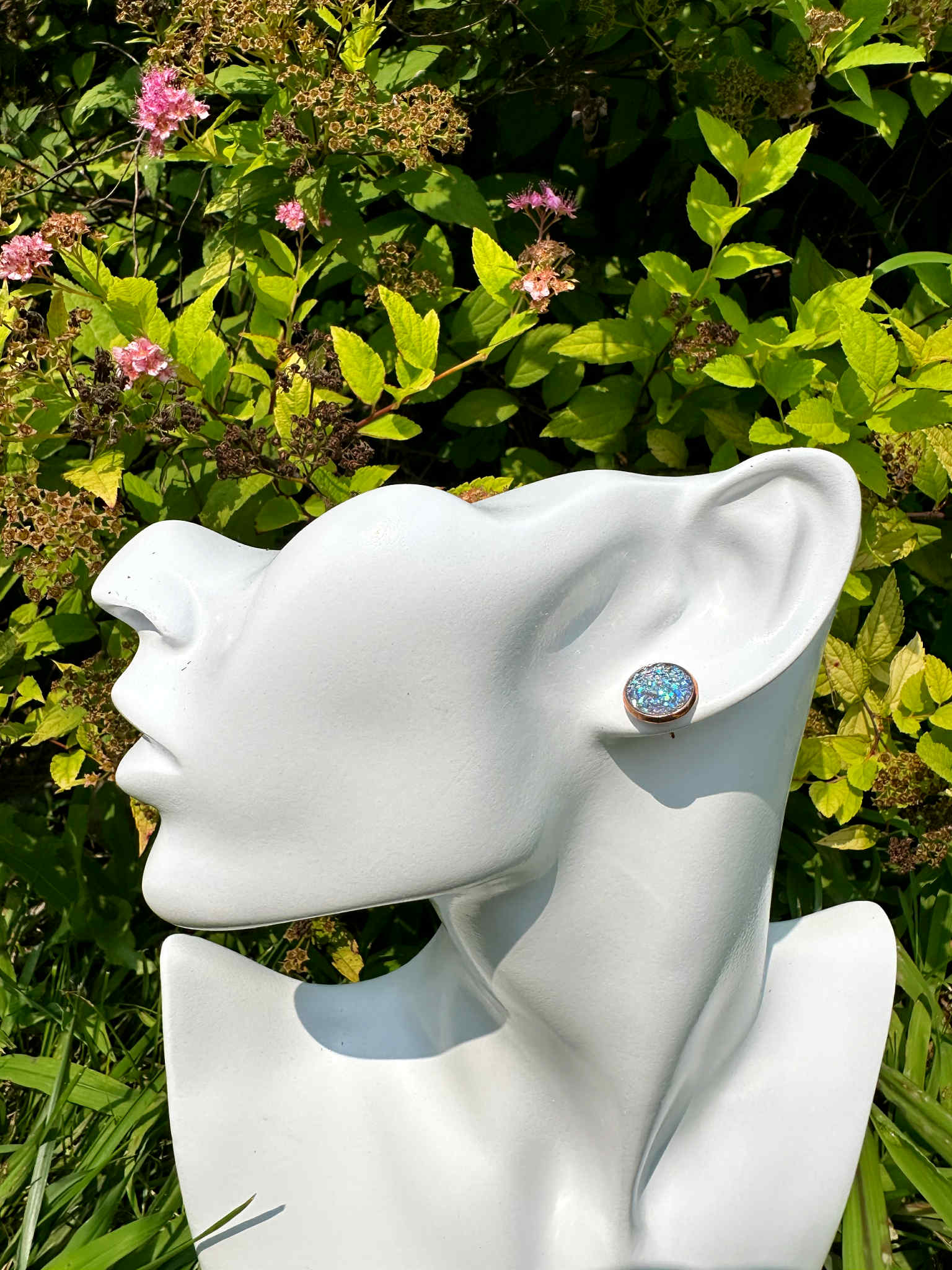 Elegant and luminous, these earrings feature the shimmering surface of silver druzy crystals, catching light with every movement. Druzy is often seen as a symbol of inner brilliance and amplified energy, believed to enhance clarity, strengthen intuition, and promote emotional balance. The cool silver tones add a touch of sophistication, making these earrings versatile enough for everyday wear or special occasions. Radiant yet grounding, they’re the perfect blend of natural sparkle and timeless style.
