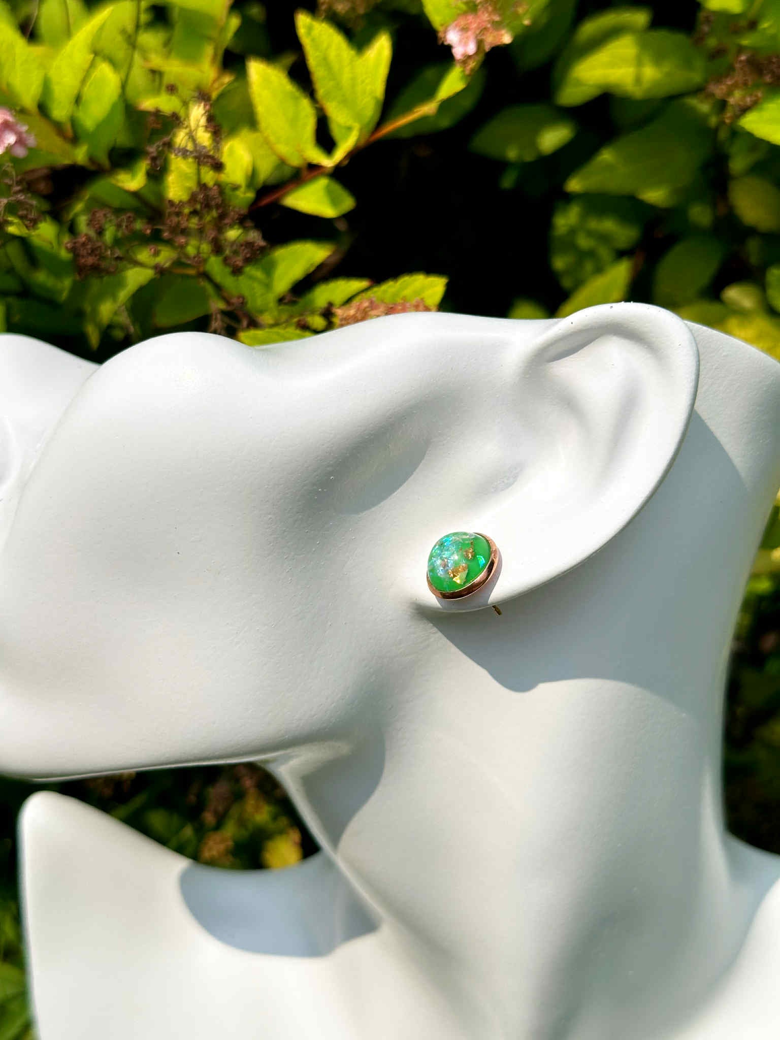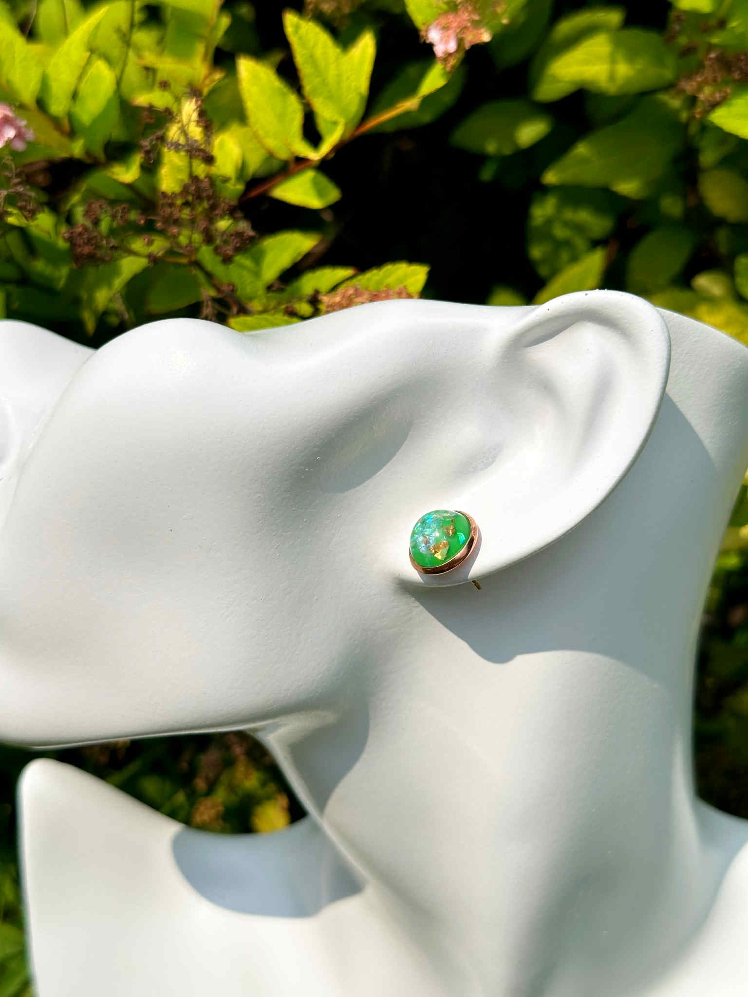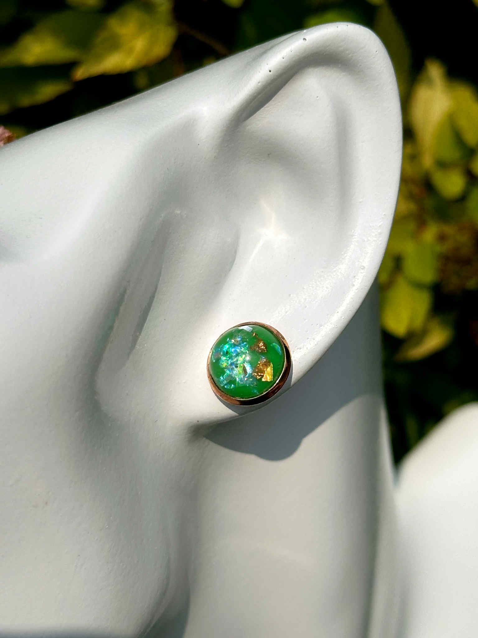 Vibrant and full of life, these earrings sparkle with the rich green tones of shamrock druzy crystals. Druzy is a symbol of light and positivity, believed to amplify energy, uplift the spirit, and encourage emotional harmony. In its shamrock shade, this crystal also represents growth, renewal, and good fortune—making these earrings a meaningful token of both style and symbolism. With their natural shimmer and earthy charm, they’re perfect for adding a touch of sparkle and luck to any look.