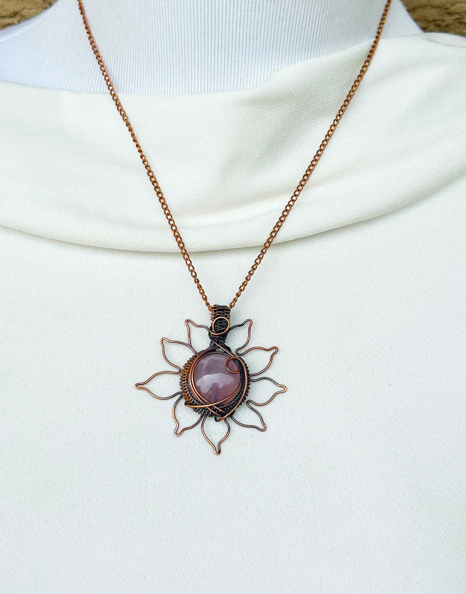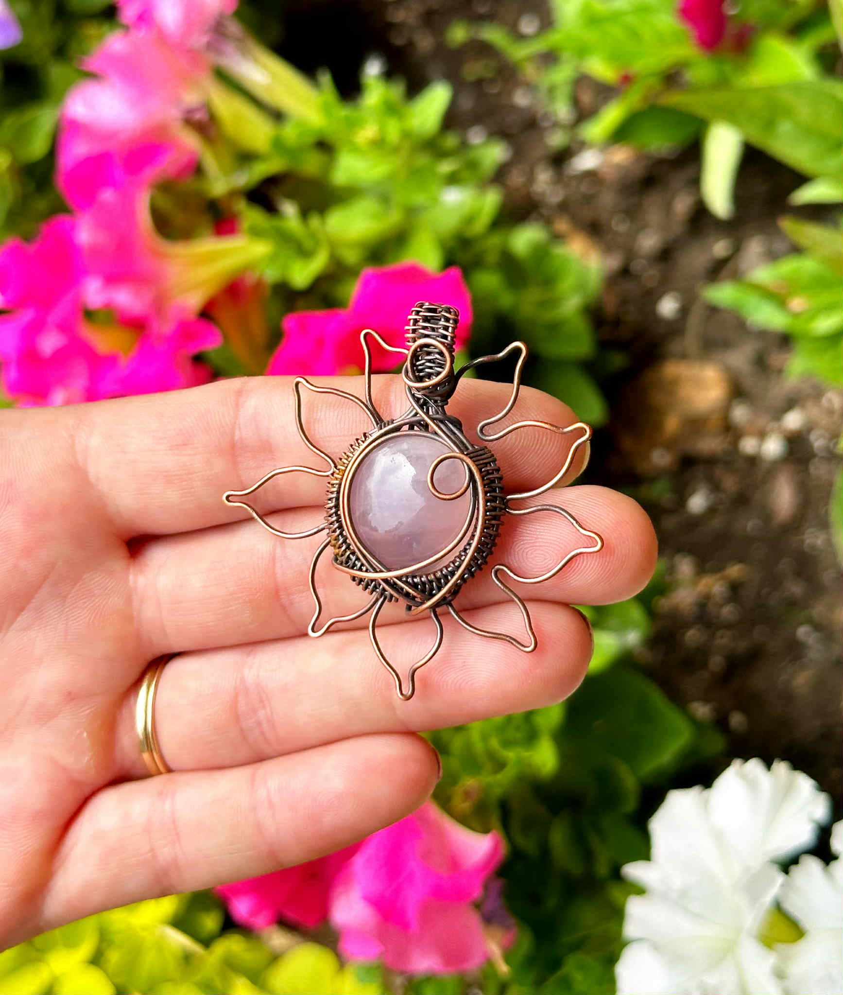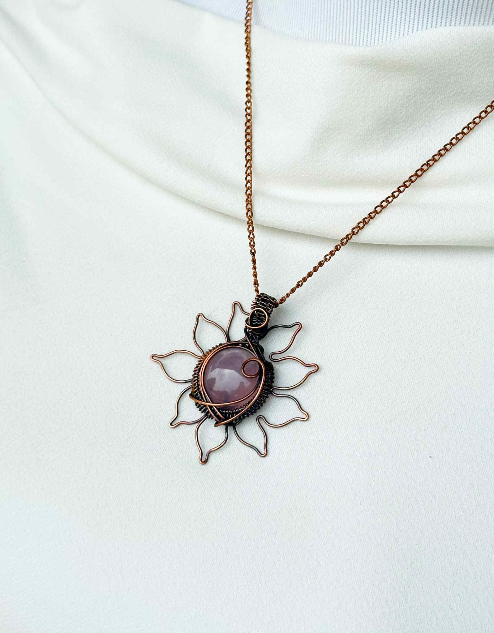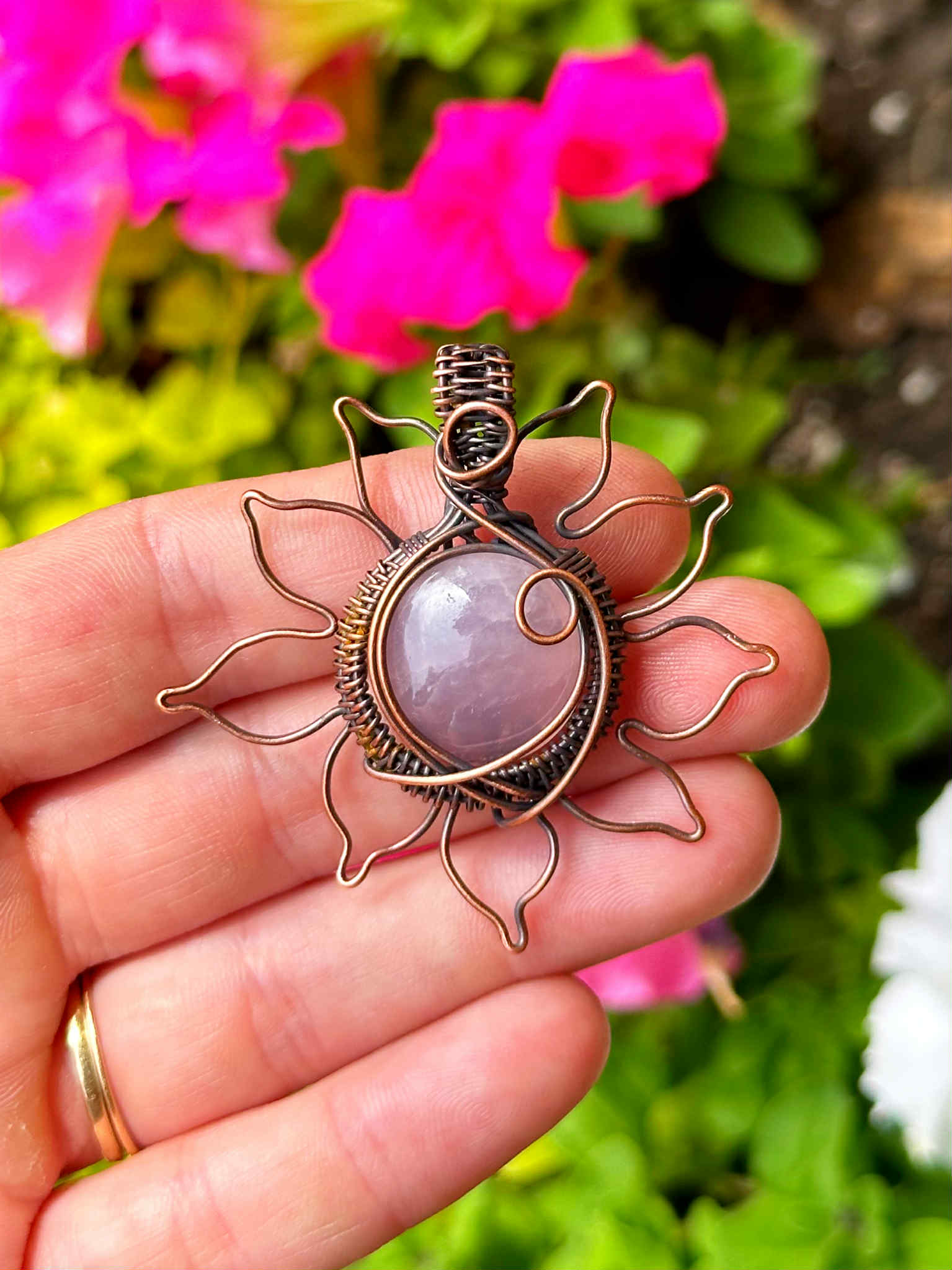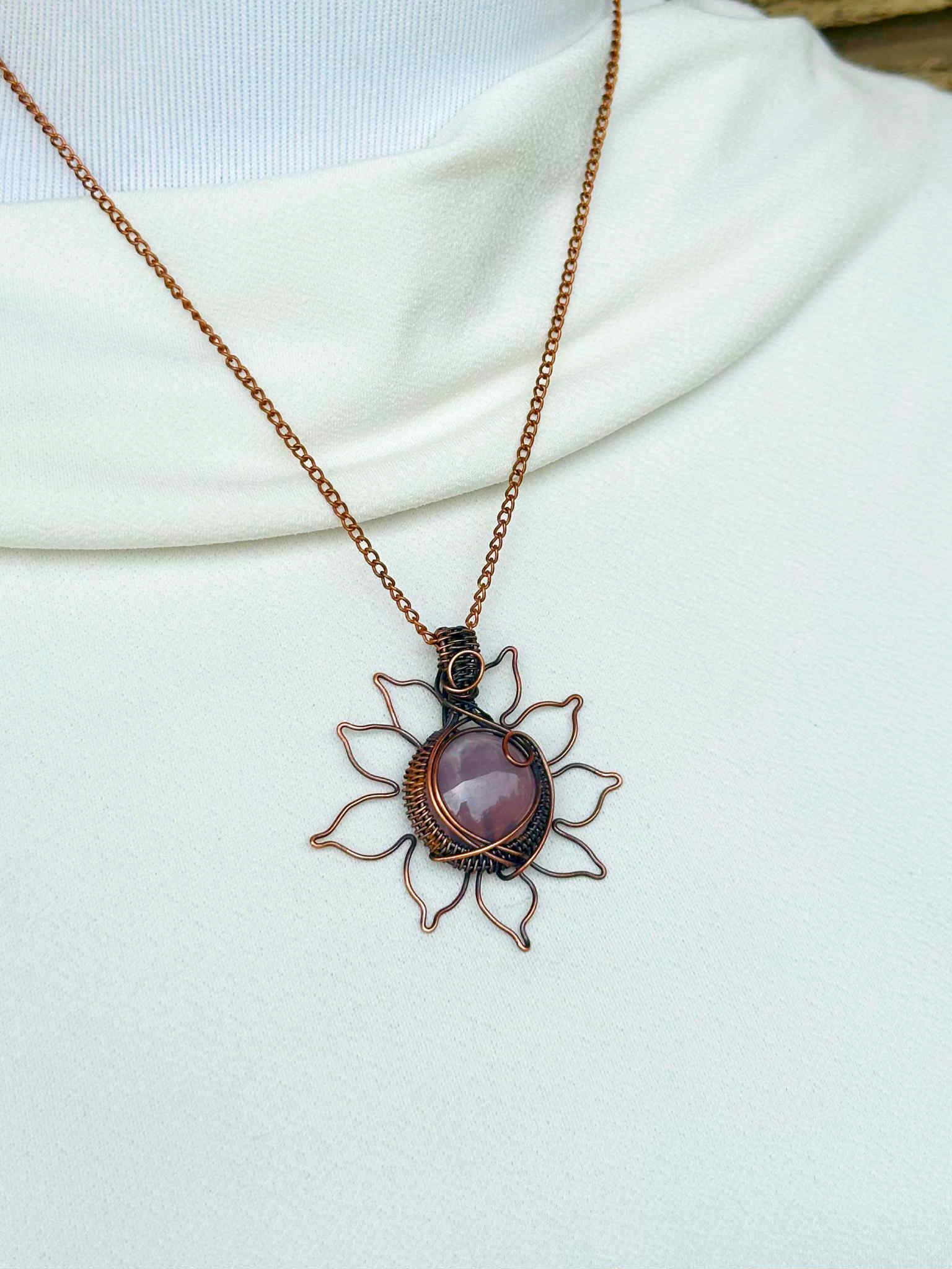 Wrapped in pure copper wire to harmonize the stone’s loving energy with grounding warmth.