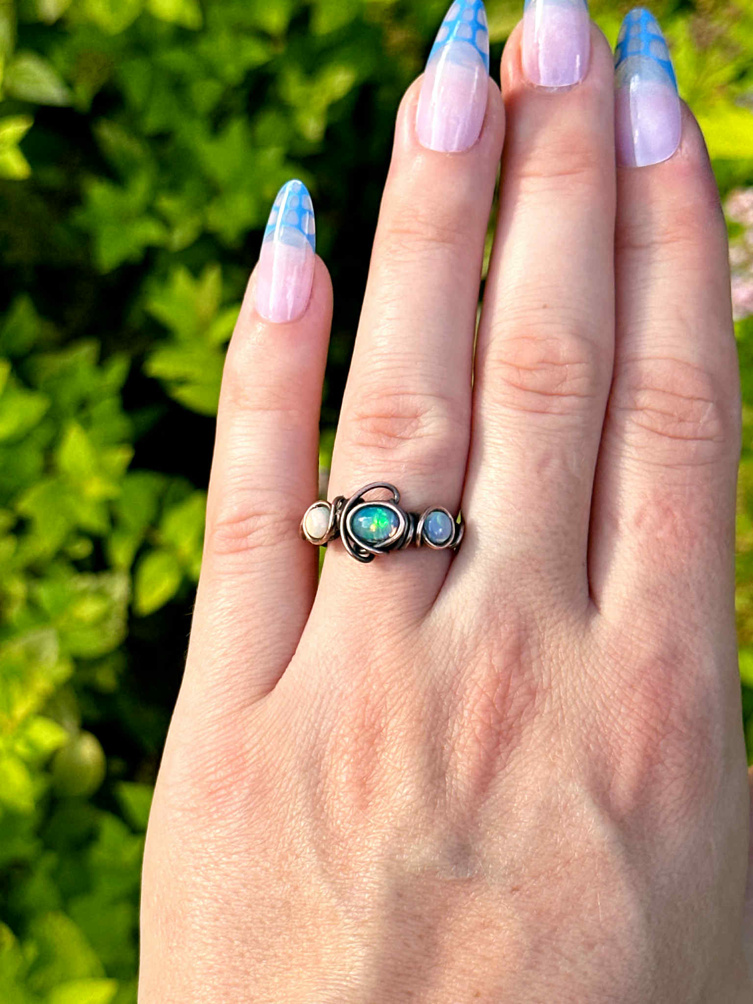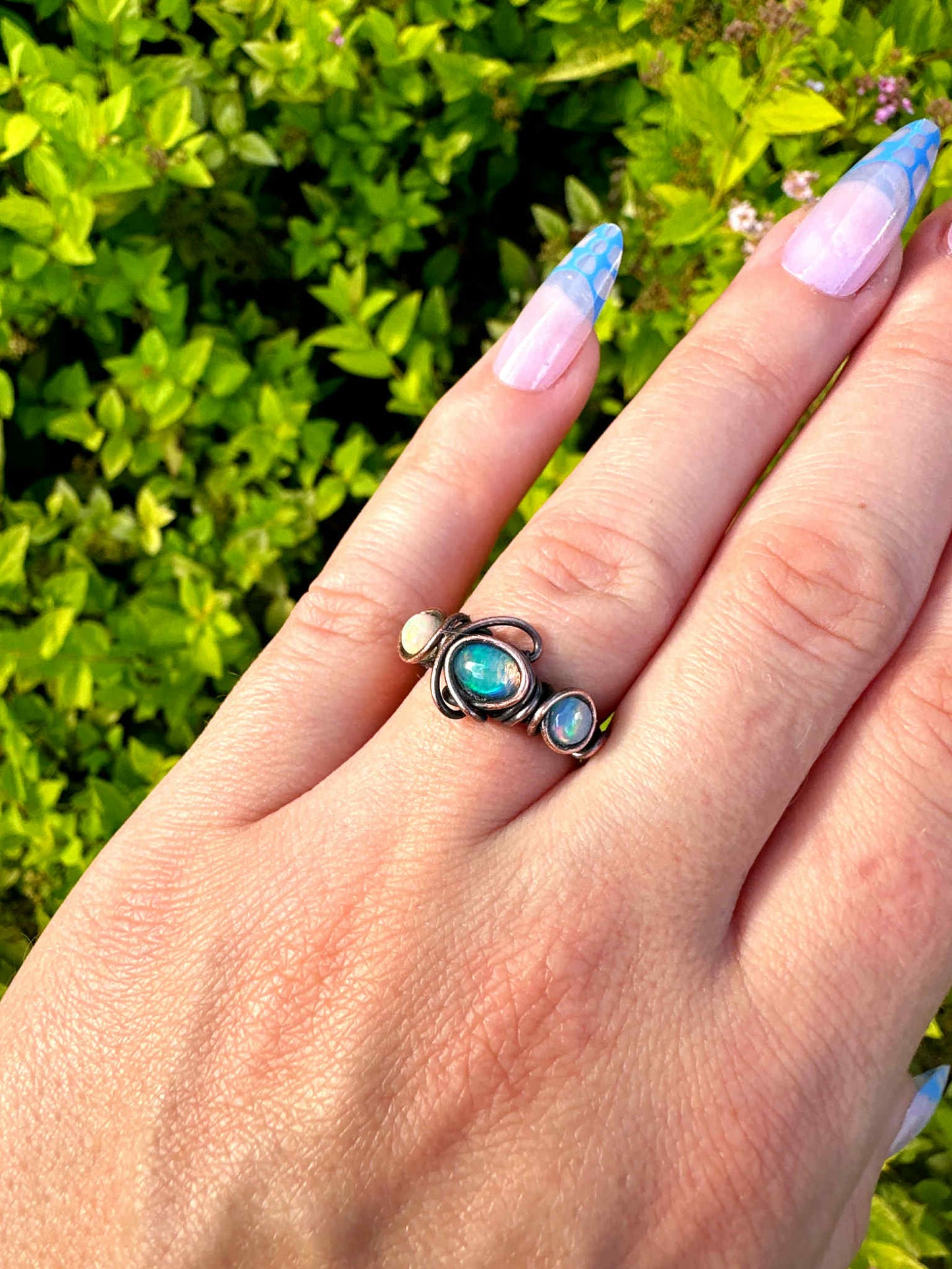 Triple Opal Azure Dream Copper Ring *Size 6*