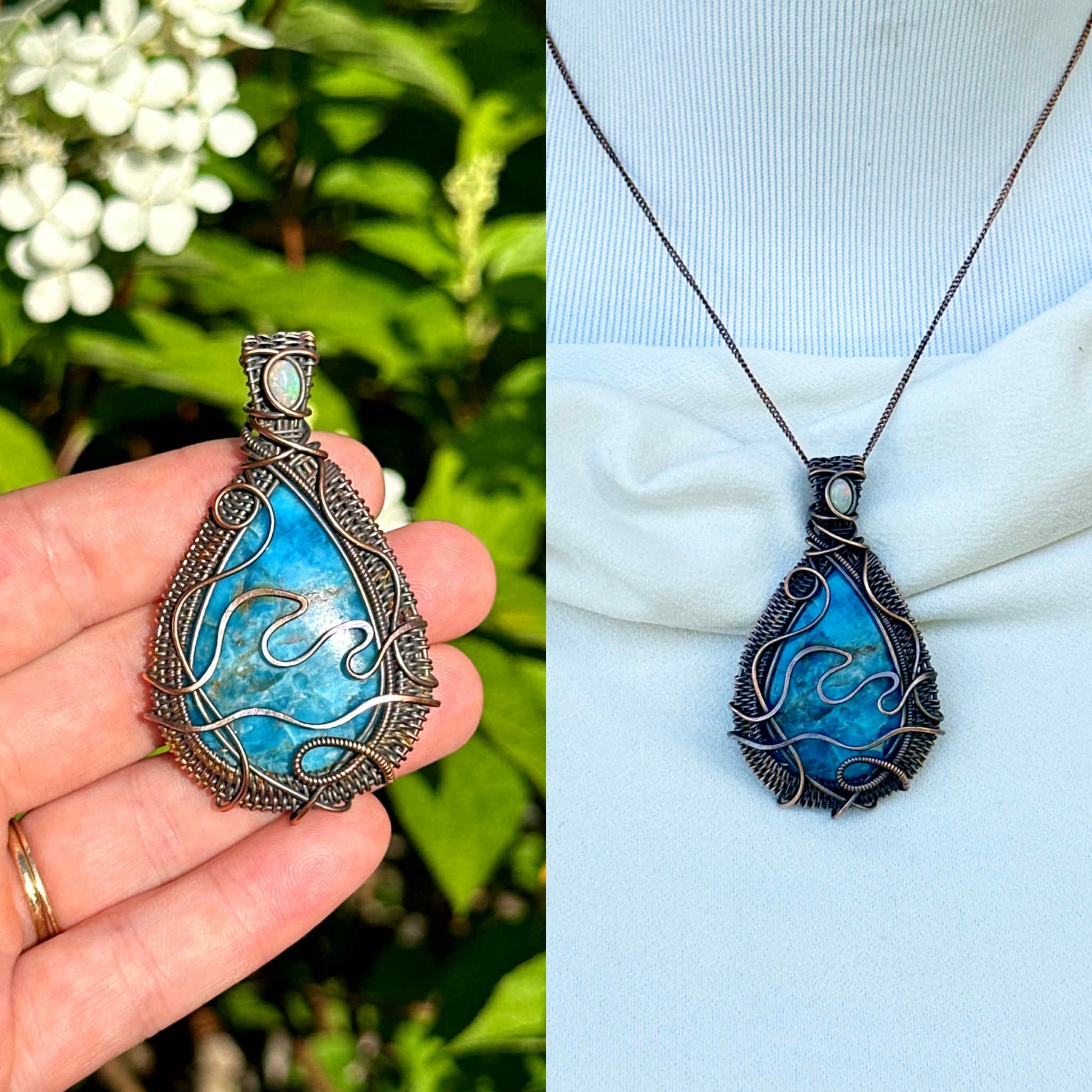 Refreshing and inspiring, this Apatite pendant channels the endless flow of energy and clarity found in the ocean’s waves. Paired with a handcrafted wave symbol, it becomes a talisman of personal growth, emotional balance, and the power to ride life’s currents with confidence and ease.