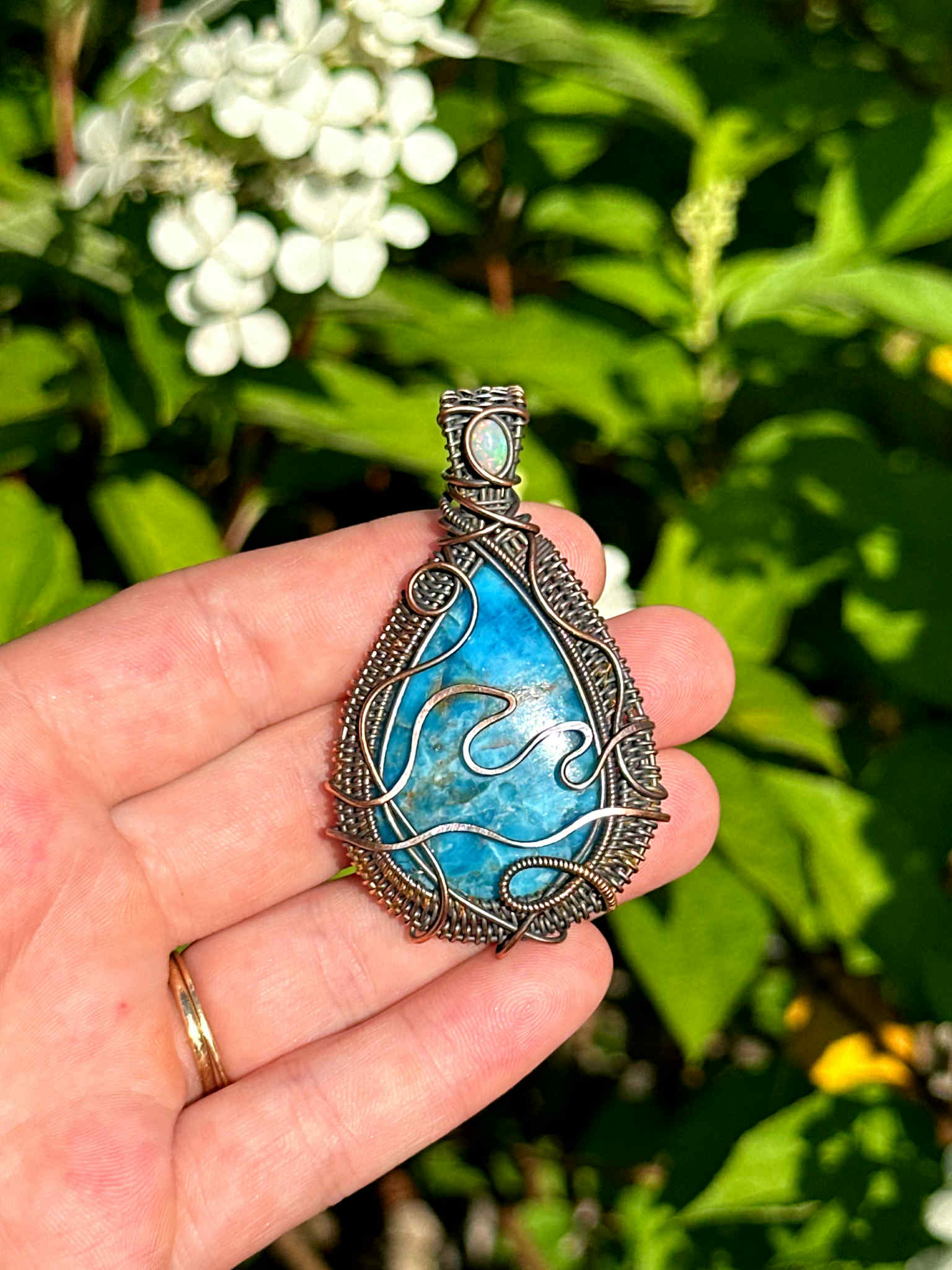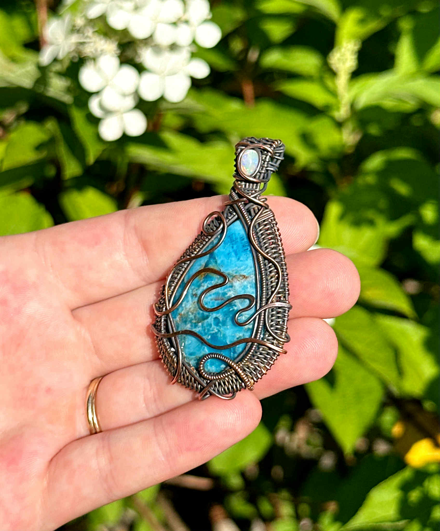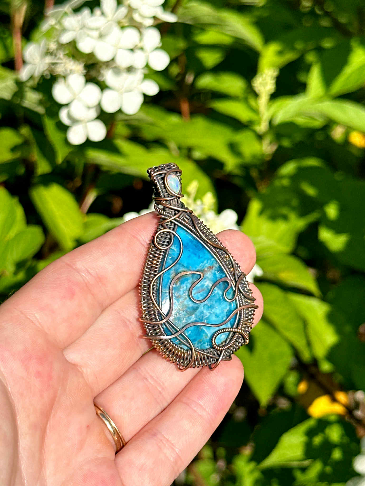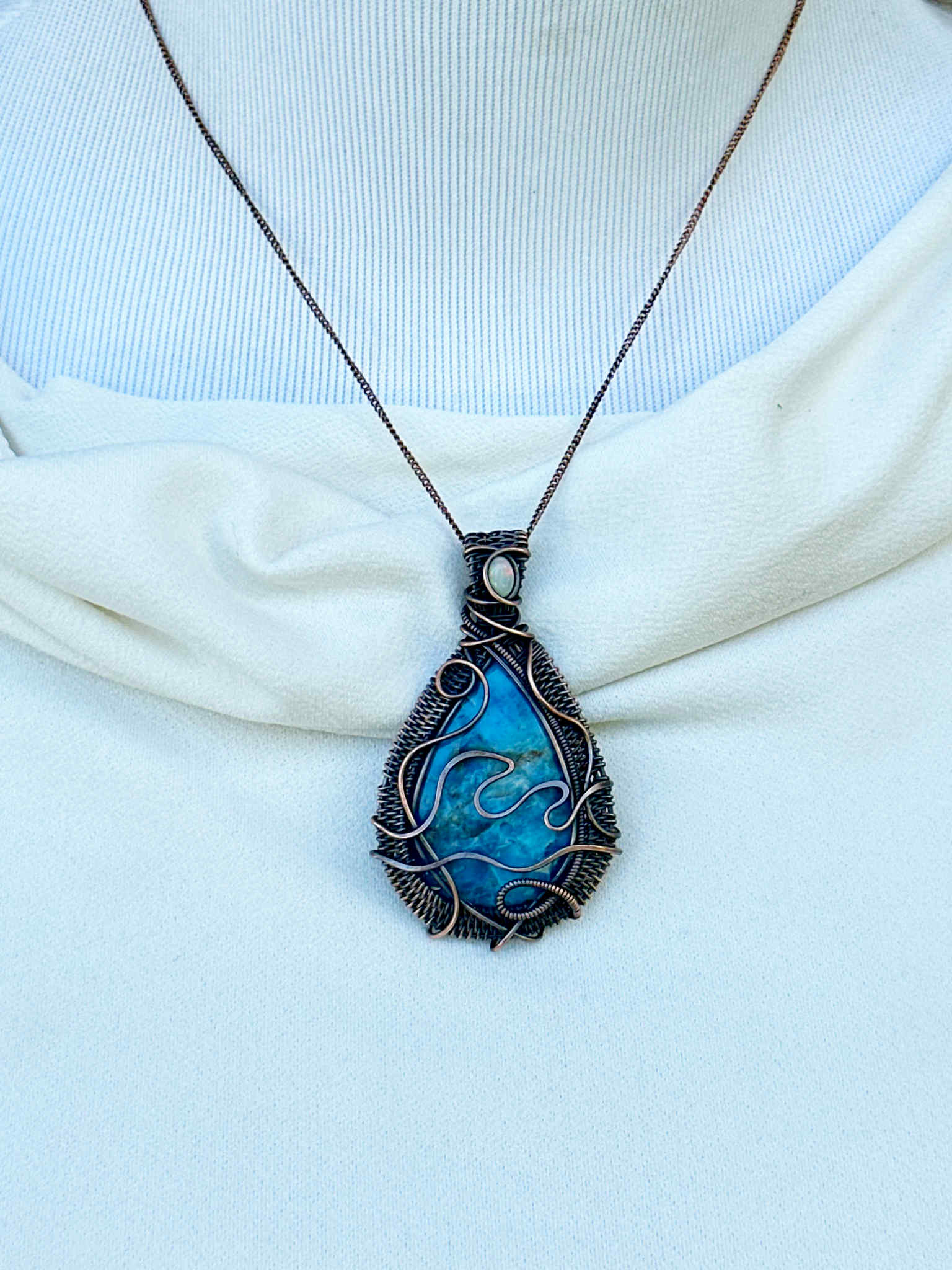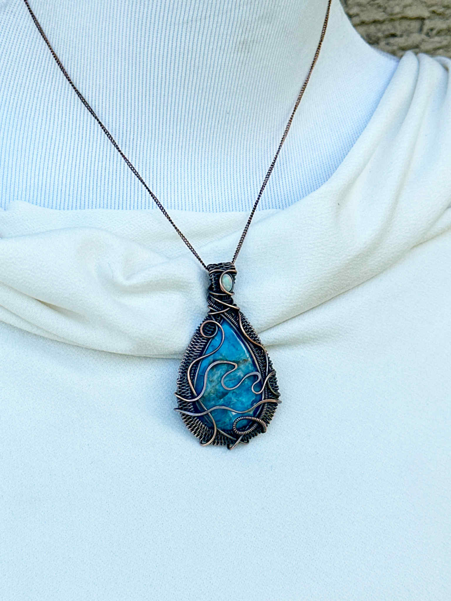 Wrapped in pure copper wire to harmonize the stone’s dynamic energy with grounding warmth.